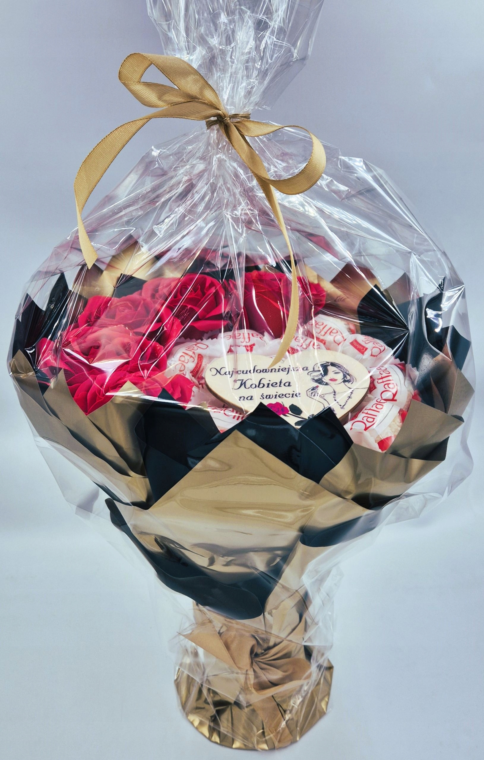 БЕСПЛАТНО! Букет упакован в фольгу (целлофан), связанный с цветом, выбранным в букет. Он готов дать! Это также дополнительная защита букета для транспорта. Букет также может быть дан без целлофана. h1>