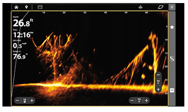 Текущая обратная связь от сонара вместе с улучшенной визуализацией Убедитесь, что более четкий вид на рыбу, структуры и приманки.