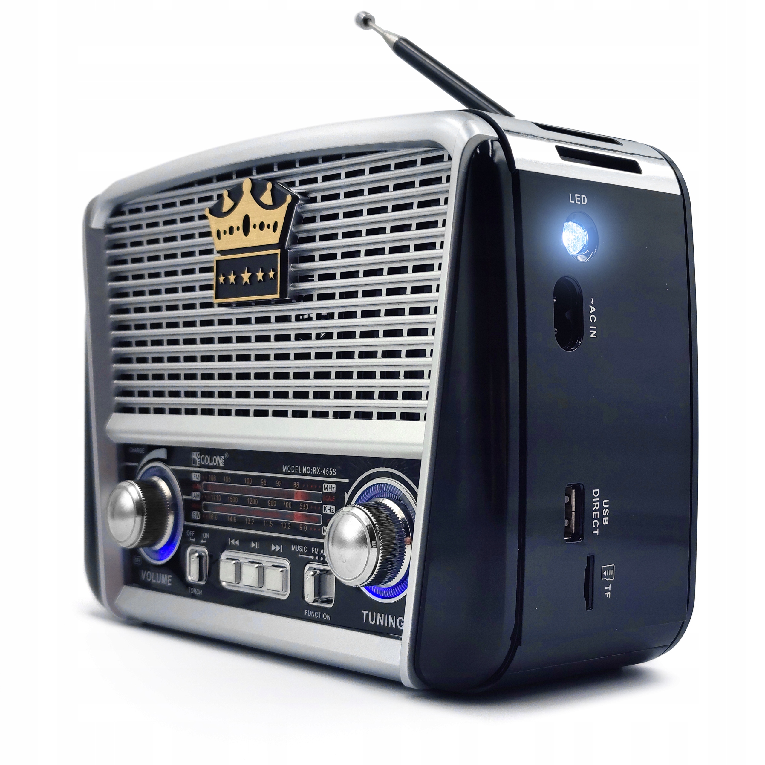 Простой в использовании кухонный/строительный радиоприемник, стиль которого отсылает к ушедшей эпохе.