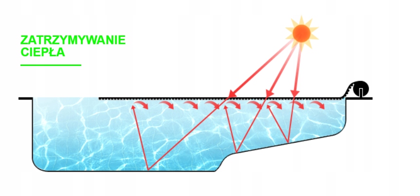 Воздушные камеры в фольге действуют как тепловой буфер , останавливая тепло и в то же время сохраняя крышку на поверхности воды . Благодаря этому температура воды может увеличиваться на 2-5 ° C.