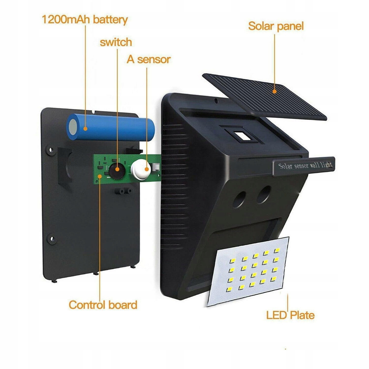 - Водонепроницаемый 20-светодиодный садовый настенный светильник с датчиком движения на солнечной энергии.