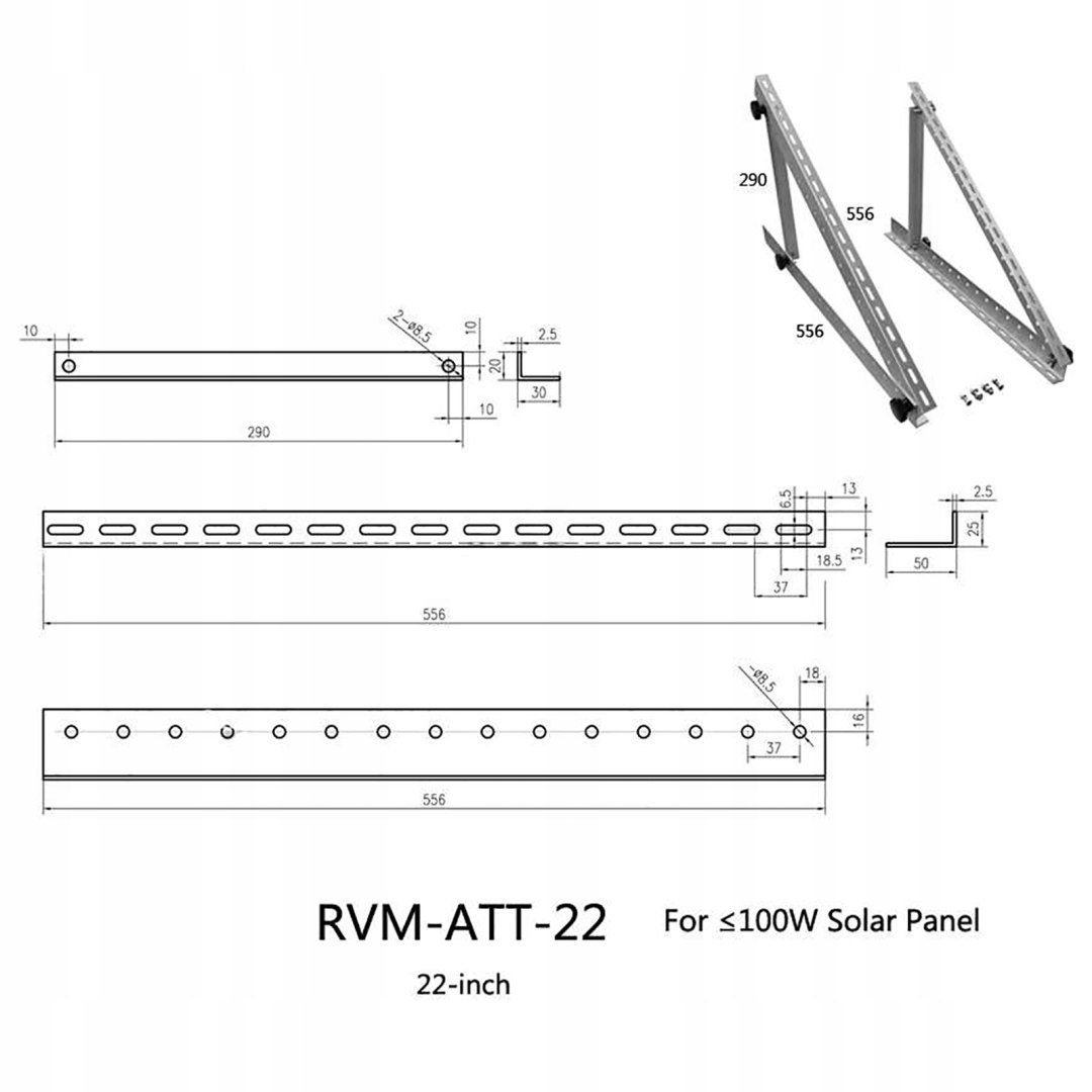 - Длина кронштейна может быть изменена в зависимости от длины солнечной панели.