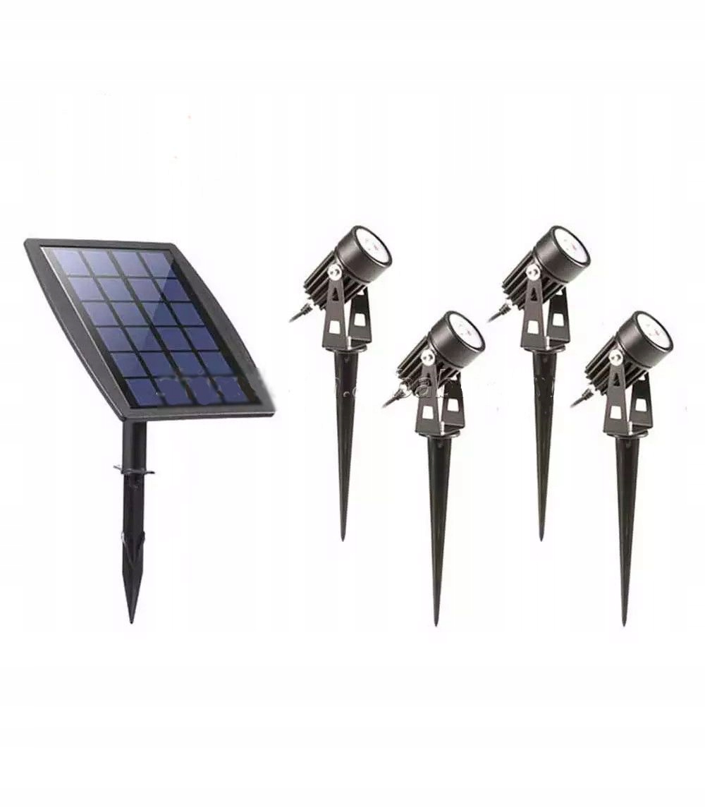 Солнечная лампа с четырьмя источниками света — отличный способ осветить кусты, деревья, стены и газон в вашем саду.