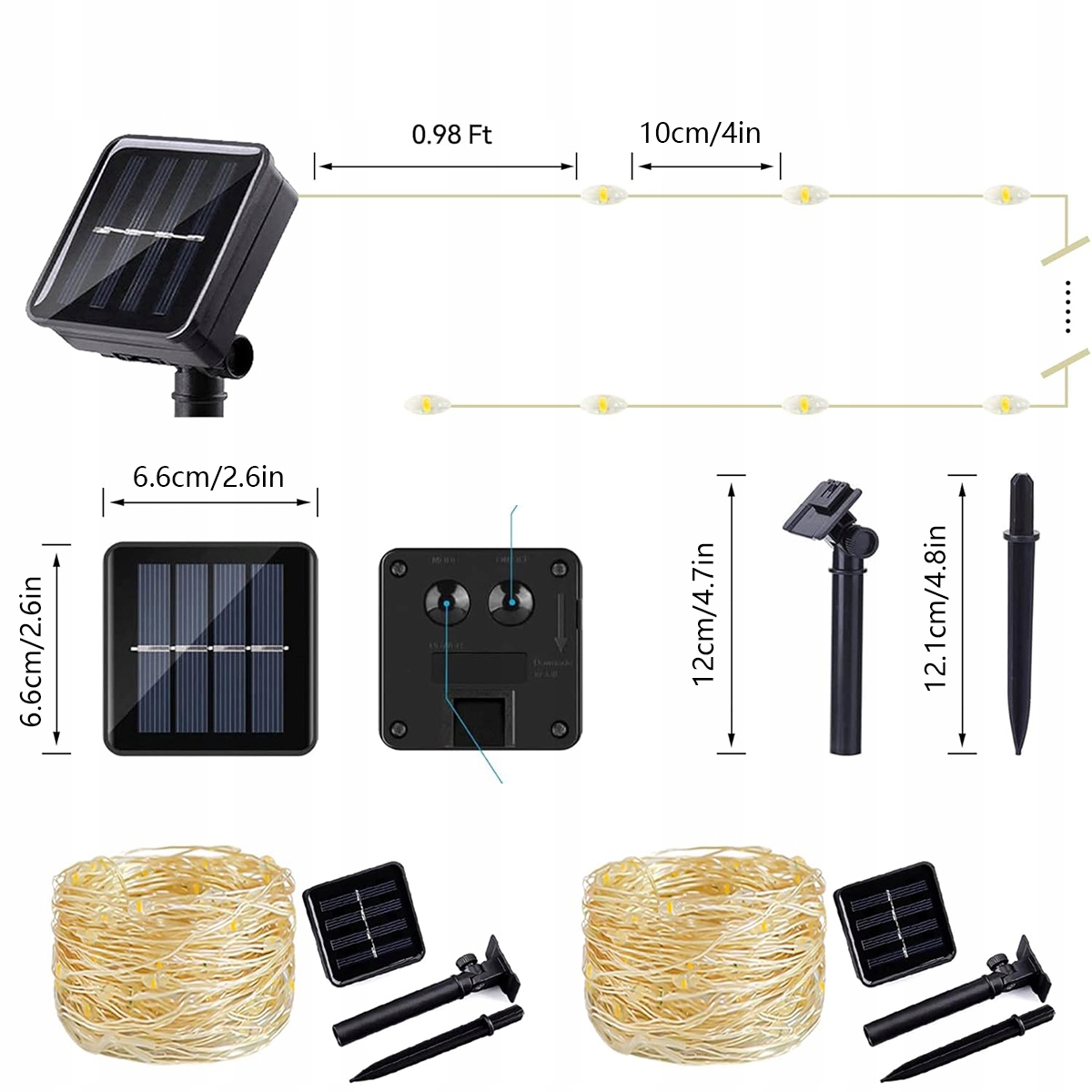 ➡ 2 Солнечные фонари для наружного использования светодиодов Superjasne, расстояние между каждым диодом составляет около 10 см. Миниатюрные светодиоды Superjasne испускают теплый свет, создавая романтическую и уютную атмосферу для любого случая.