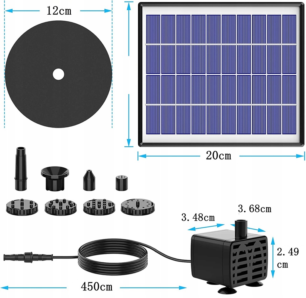 ☀ Солнечная панель 5 w : этот солнечный водяной насос оснащен солнечной панелью с высоким качеством 5 Вт, благодаря которой водяной насос может работать непрерывно даже при плохом солнечном свете. Эффекты потока воды : 6 различных форсунок могут удовлетворить различные потребности с точки зрения высоты и формы потока. Высота может быть отрегулирована путем изменения носика, что предотвращает предотвращение кастрюли из контейнера. Сопло можно легко заменить.