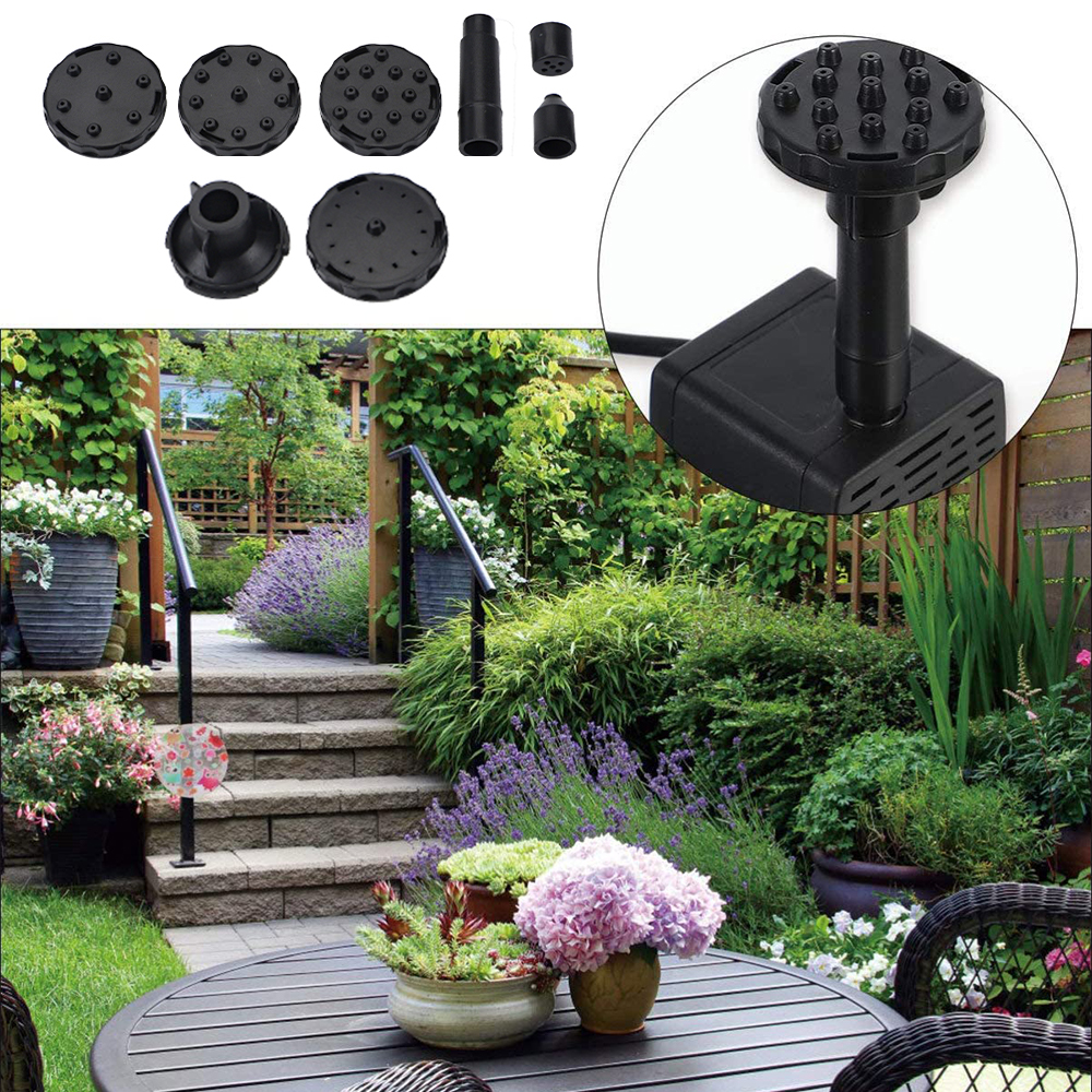 Солнечный фонтан может получить 6 различных эффектов потока воды, комбинируя или заменив сопел. Вы можете изменить форсунку в любое время, в соответствии с личными предпочтениями и различными сценариями.
