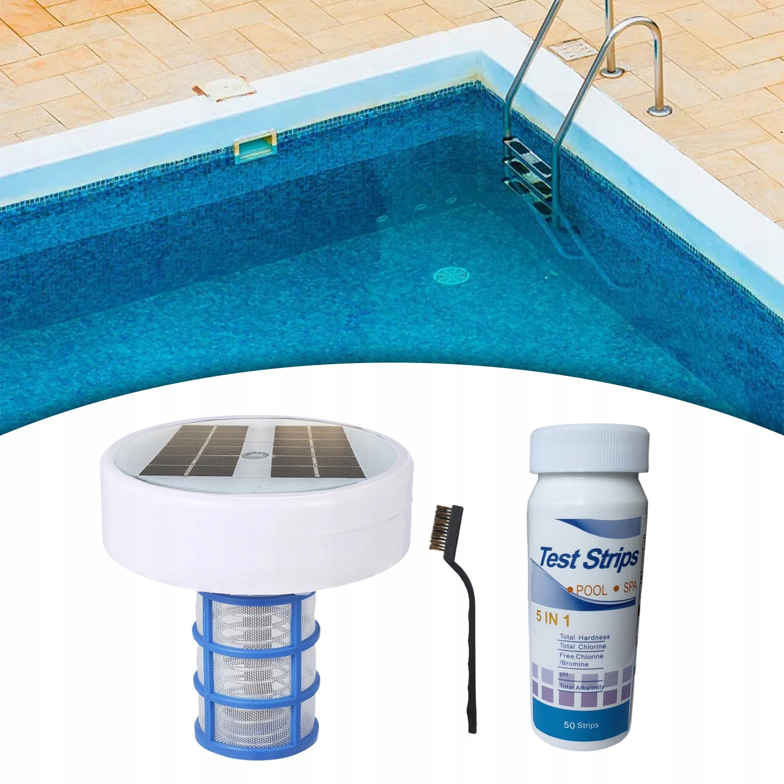 [Упаковочный контент]: 1 Солнечный ионизатор для бассейна, 1 щетка, 1 тестовая бумага.
