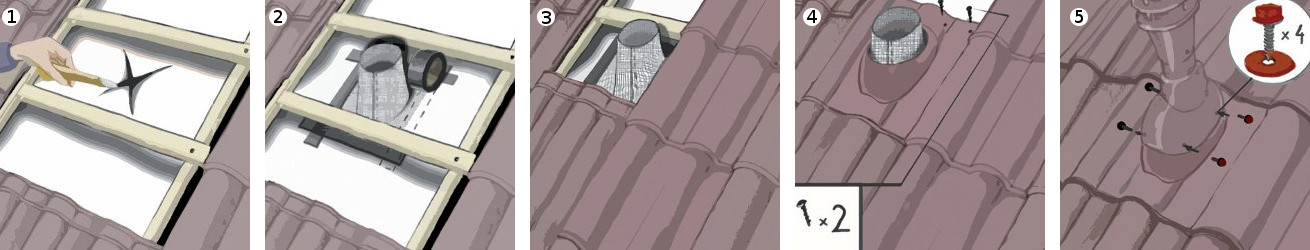 Проход на крыше является формой нижней части вентилятора таким образом, что он соответствует конкретной модели плитки. Переход не является универсальным переходом