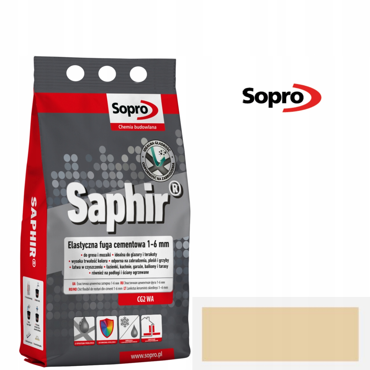 Sopro saphir®-это цемент, гибкий, с высокой устойчивостью к проникновению воды и грязи в слое, что соответствует требованиям CG2 WA в соответствии с PN-en 13888. Обработка имеет особенно хорошие свойства. Эти особенности в сочетании с деликатным, гладким и простым в уходе за поверхностью, а также повышенной долговечностью цвета влияют на длинный эстетический вид сустава.
