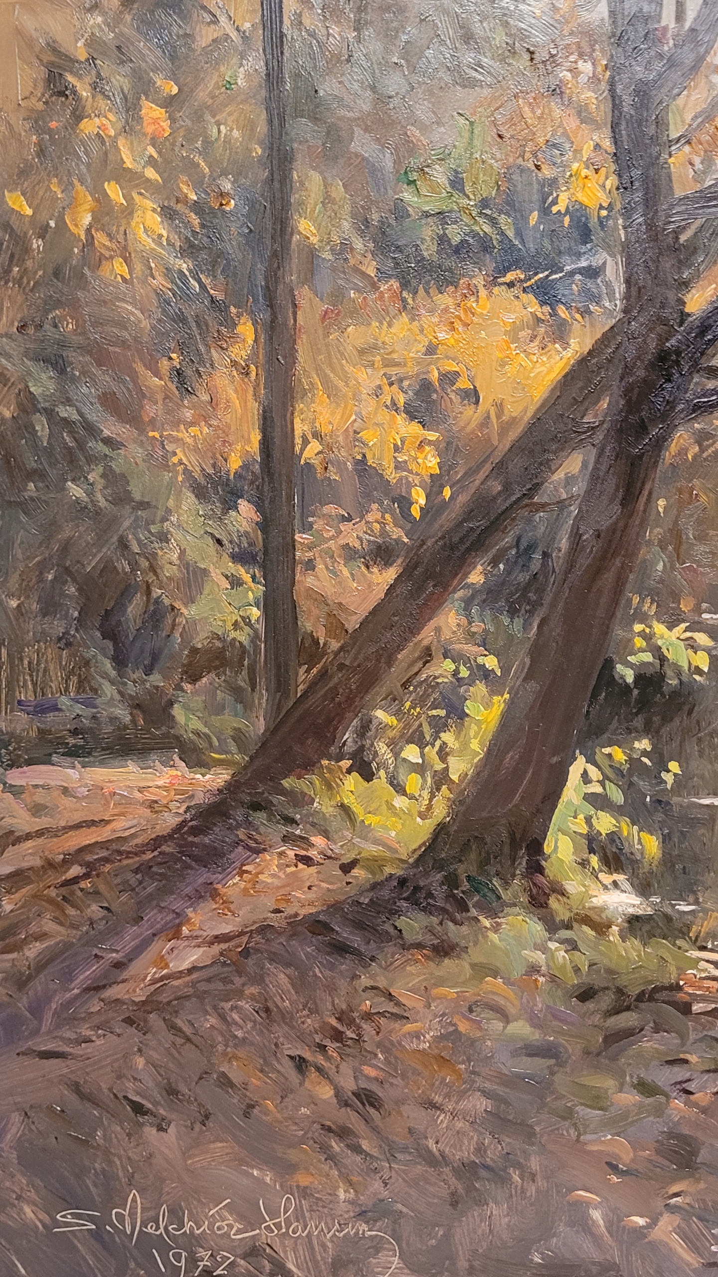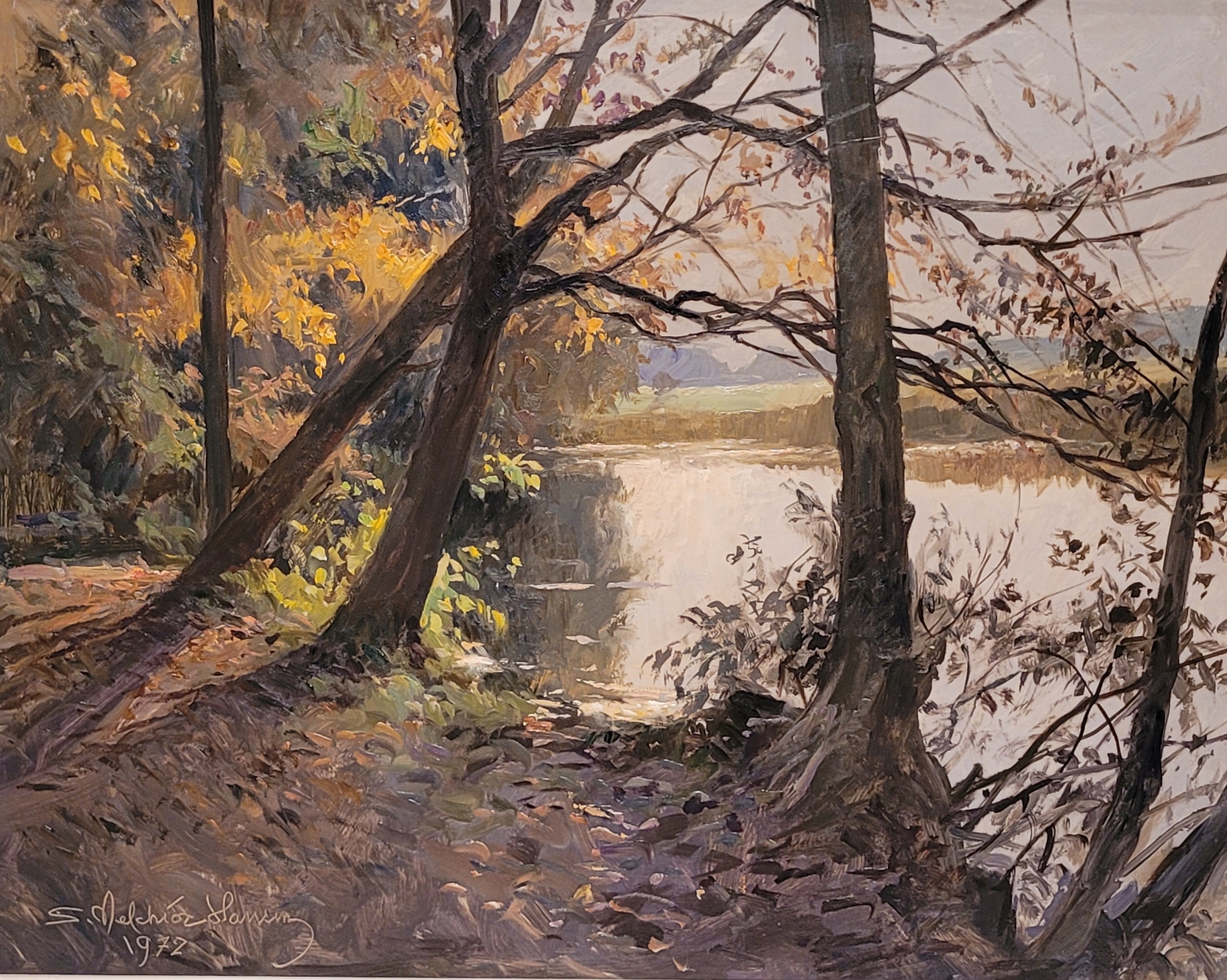 Сорен Мельхиор Хансен (1908-1978) - «Лесной пейзаж с озером», Масляная живопись