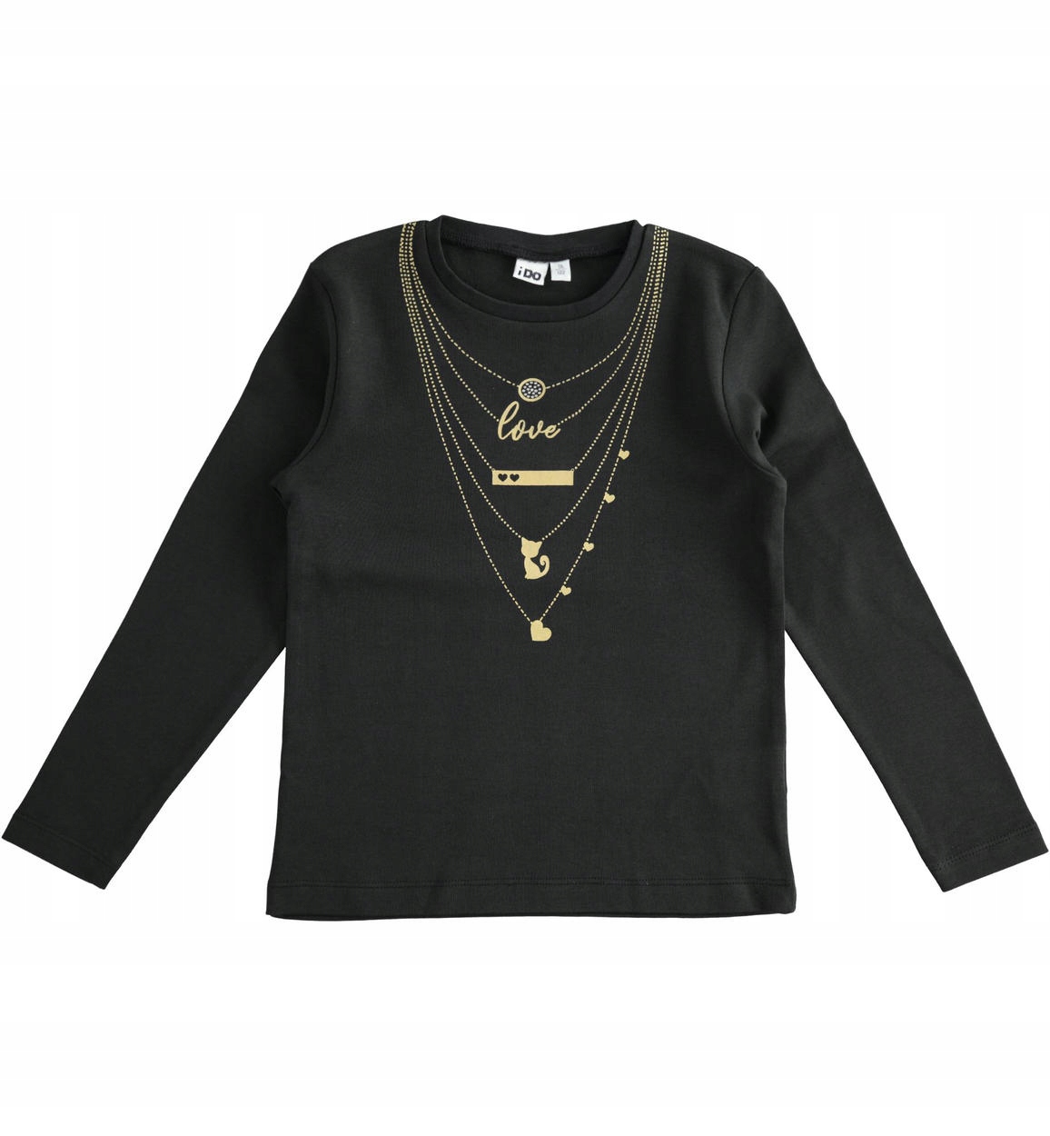 Футболка для девочек с длинными рукавами из 100% хлопка интерлок с принтом с эффектом ожерелья из золотой фольги. Футболка для девочек доступна в кремовом и черный
