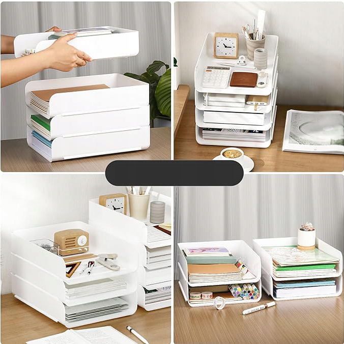 👉4-уровне A4 корзина для хранения, лоток документов из Pet Plastic, лоток списка, офисный организатор для укладки в многофункциональной полке документа h2>