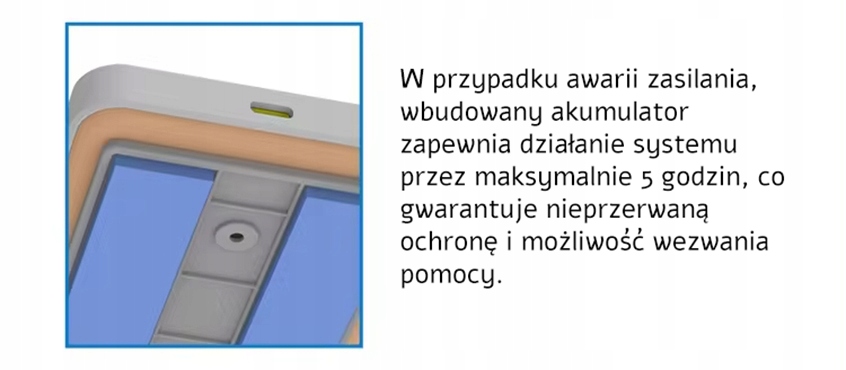 В случае сбоя питания встроенная батарея обеспечивает систему максимум 5 часов, что гарантирует непрерывную защиту и возможность призывать к помощи >