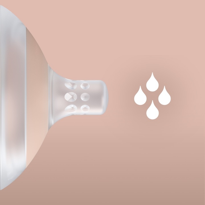 - Форма и пропорции смоделированы по материнской груди, что позволяет ребенку естественно расположить губы и правильно.