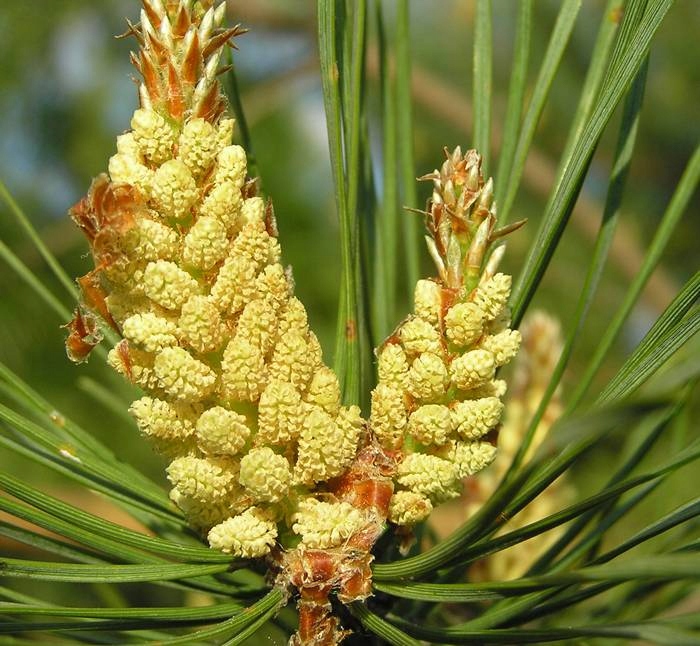 ВНЕШНИЙ ВИД хвойное дерево, вечнозеленое, крона рыхлая, вначале коническая. , с возрастом становится раскидистой или зонтичной, в зависимости от условий обитания. Одиночно растущие сосны имеют раскидистую, довольно густую крону. Растущие тесно в лесных группах, деревья теряют нижние ветви и развивают прямой ствол с высокой кроной. Кора у основания ствола старых деревьев серо-коричневая, толстая (около 10 см), глубокобороздчатая, в верхней части коричнево-красная, отслаивающаяся тонкими листками. Шишки сидят на коротких черешках, закрытые, мелкие и зеленые, иногда изогнутые, узкояйцевидные, со временем раскрываются, становятся широкояйцевидными и буреют. Они достигают от 3 до 7 см в длину. Высаживают одиночно или по 2-3 рядом.