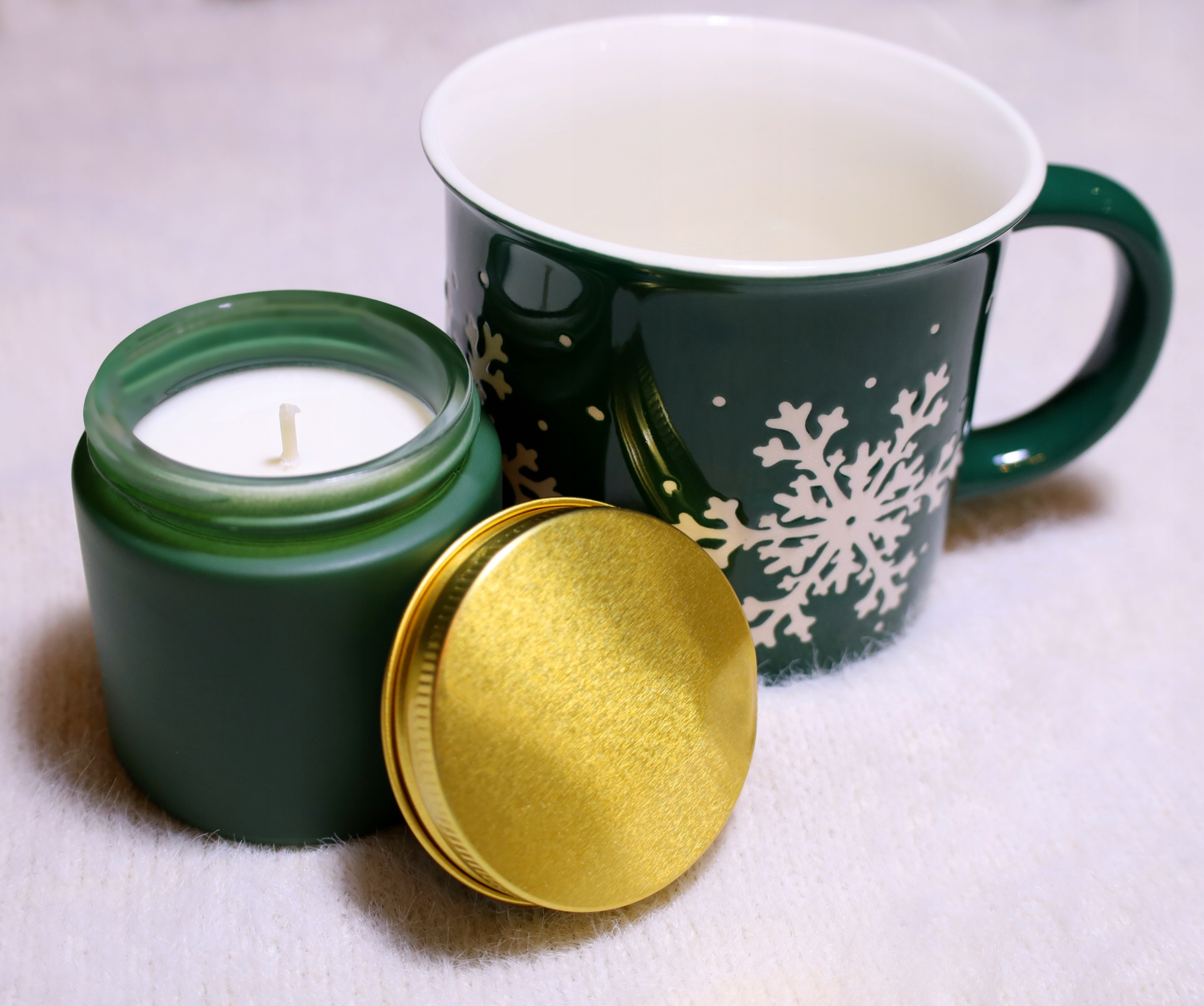 Натуральный соевый воск, веганский продукт. Спроектирован в со вкусом цвета зеленый и золотой .