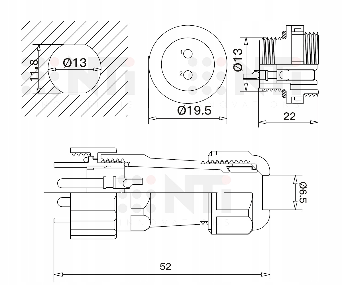 Панельная розетка с вырезом, защищающим от механических повреждений, привинченная шестигранной гайкой и корпусом вилки, свернутым из трех элементов: вилка с уплотнительным кольцом, корпус с соединительной гайкой и гайка, уплотняющая корпусной сальник, это гарантирует быструю сборку разъемов при серийном производстве, а также индивидуальную сборку в полевых условиях. .