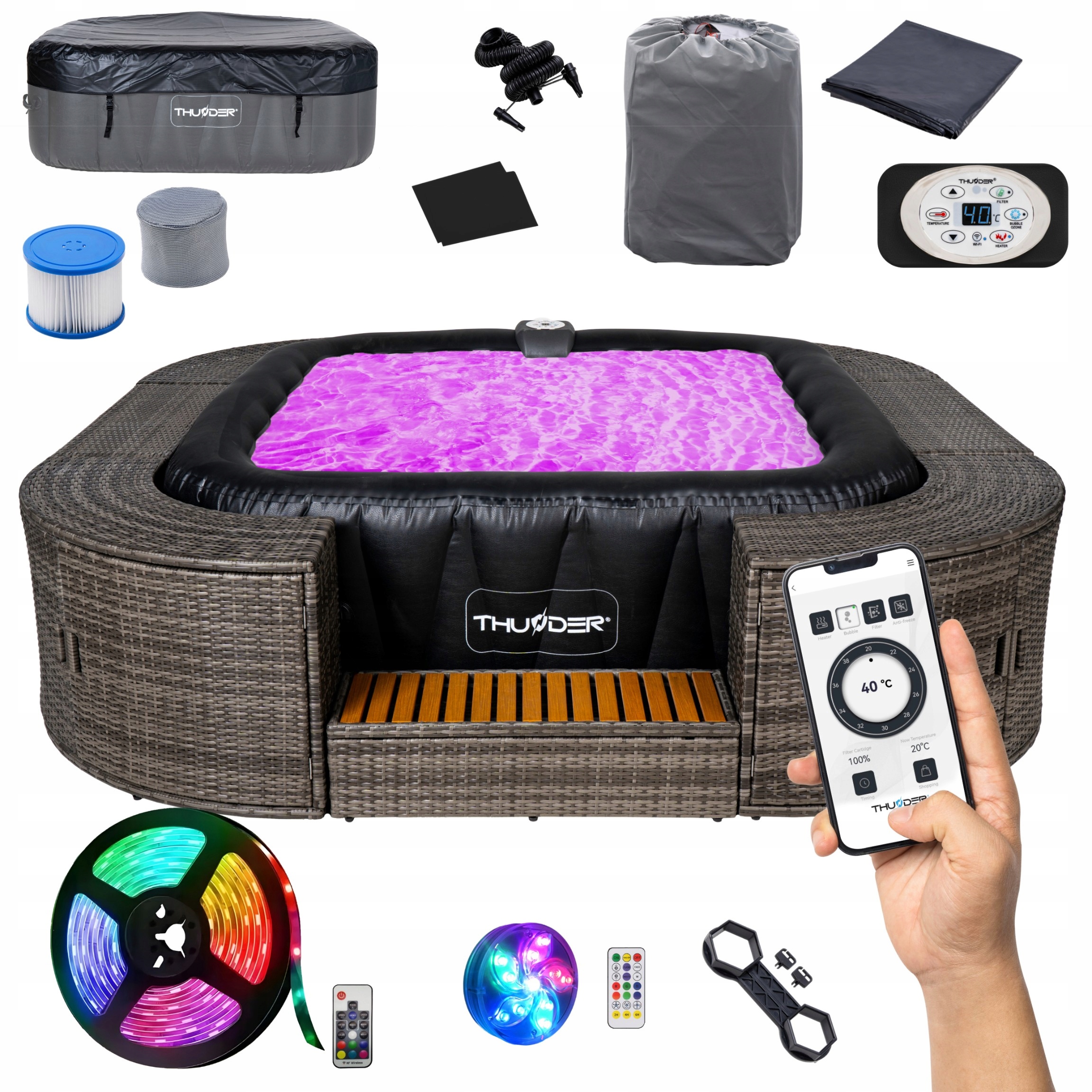 Дистанционное управление через мобильное приложение – одно из преимуществ надувной ванны⚡THUNDER®️⚡DOPPIO. Благодаря специально разработанному приложениюпользователи могут удобно управлять и корректировать настройки. Преимущества этого решения многочисленны. Во-первых, это обеспечиваетудобство и простоту использования. Вам не придется вставать, чтобы настраивать параметры воды под свои нужды! Более того, дистанционное управление позволяет пользователям >готовьте ванну заранее. Вы можете удаленновключить подогрев воды или гидромассаж перед входом в него, чтобы насладиться готовым и идеально подготовленным бассейном. Кроме того, дистанционное управлениепозволяет отслеживать состояние вашего надувного спа, например температуру воды и уровень чистоты, что позволяет пользователям правильно обслуживать и обслуживать устройство. Благодаря этому решениюнадувной СПА⚡THUNDER®️⚡DOPPIO становится еще более функциональным и адаптированным к потребностям пользователей.
