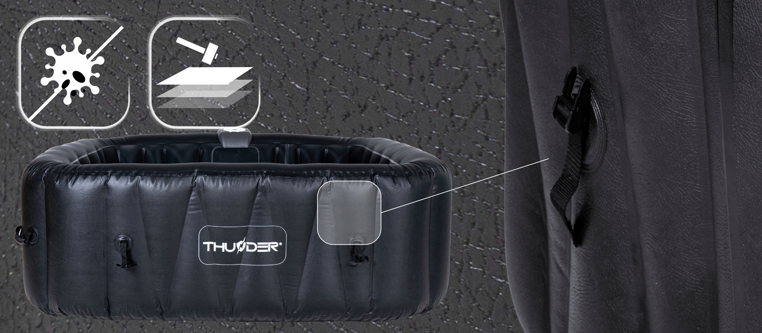 Надувной СПА ⚡️THUNDER®️⚡️ легко транспортировать, поэтому вы можете наслаждаться его расслабляющими свойствами где угодно.