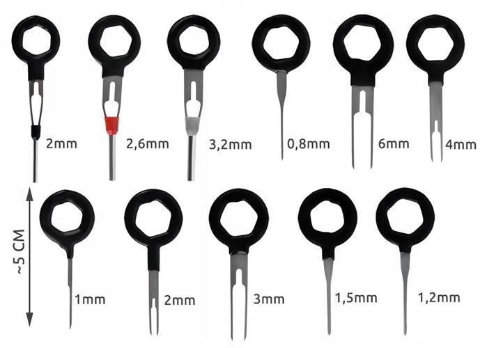 Благодаря им можно легко вынуть жгут и штифт из сломанного электрического разъема, не повредив вилку.