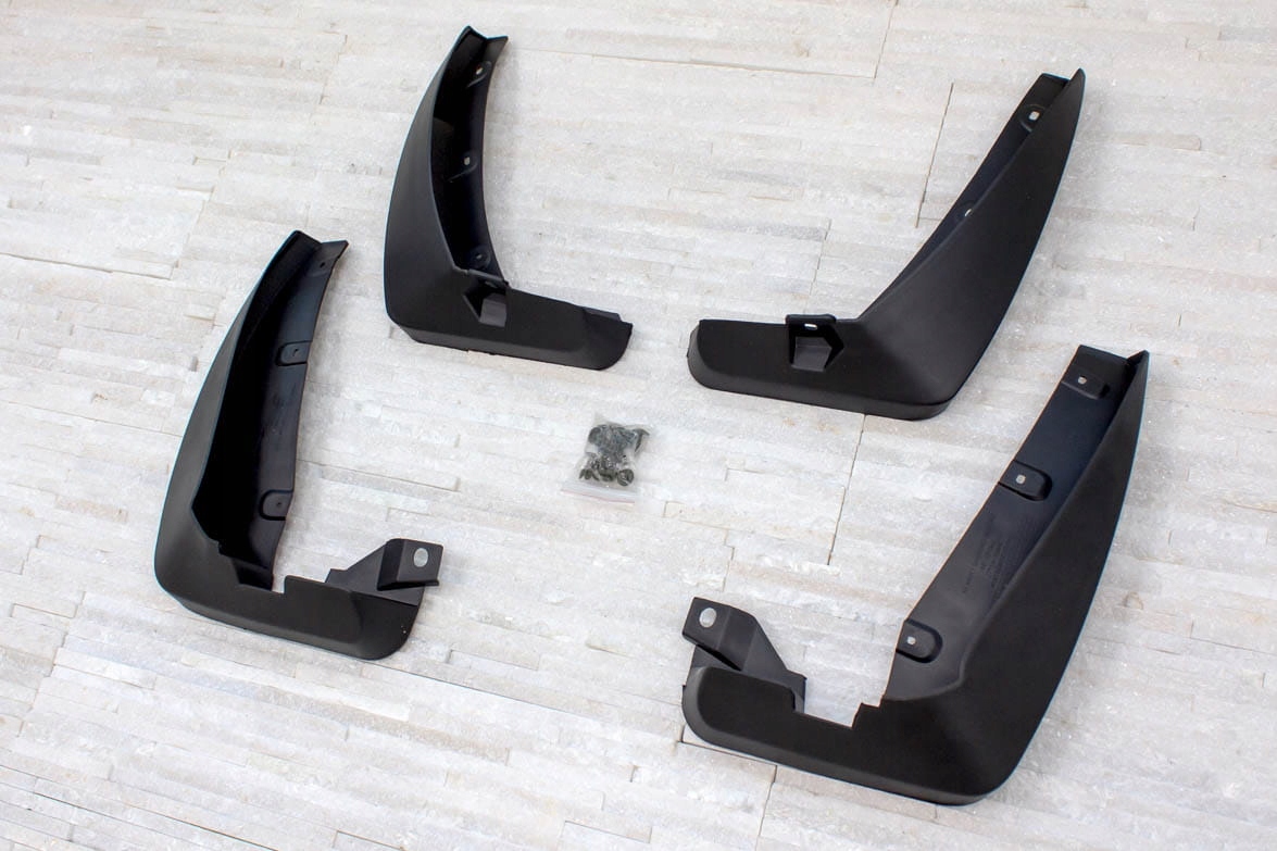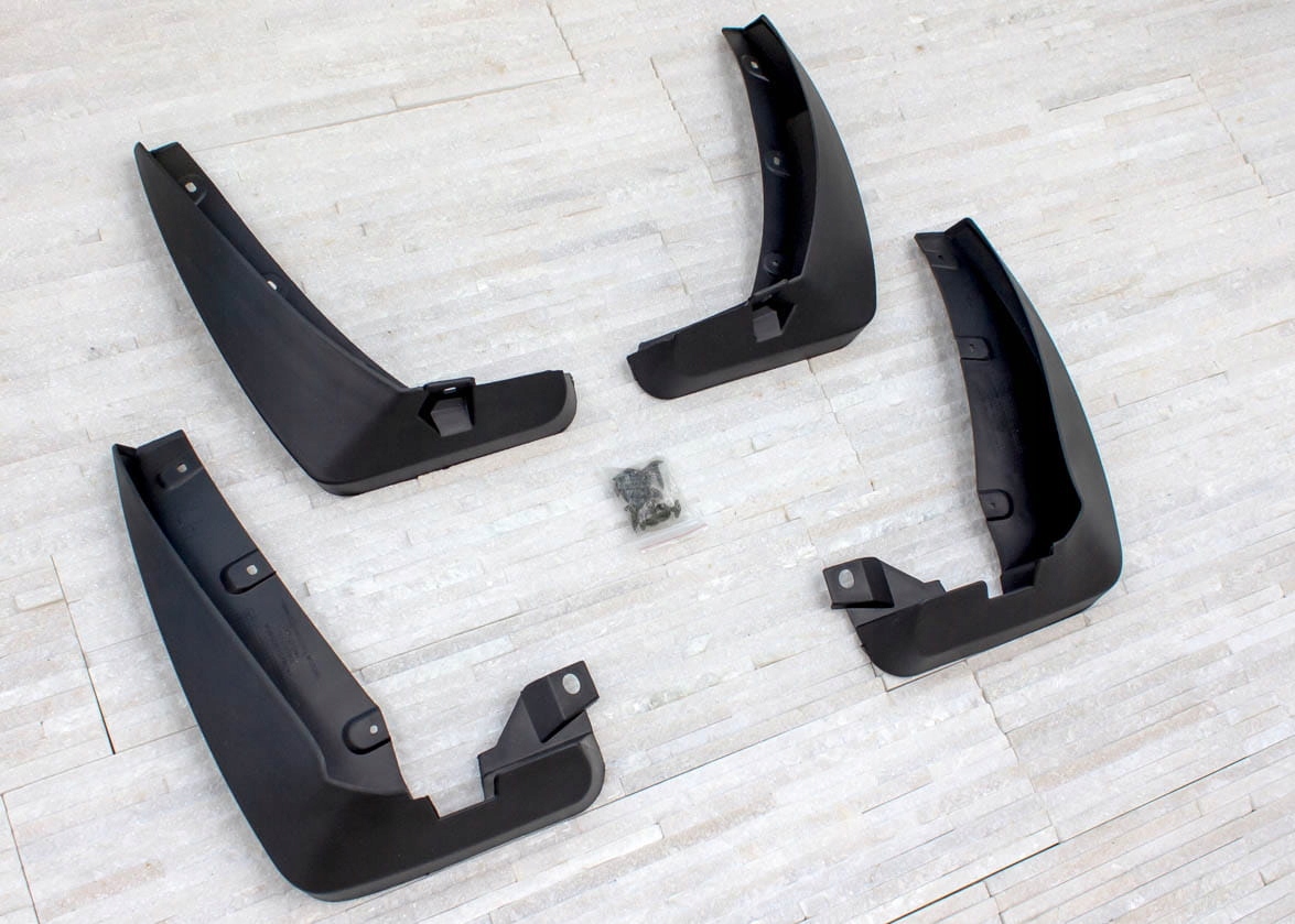 В комплект входит комплект из четырех брызговиков и элементов крепления. Изделие устанавливается на заводские места, без дополнительных доработок. Мы рекомендуем установку в профессиональной мастерской.