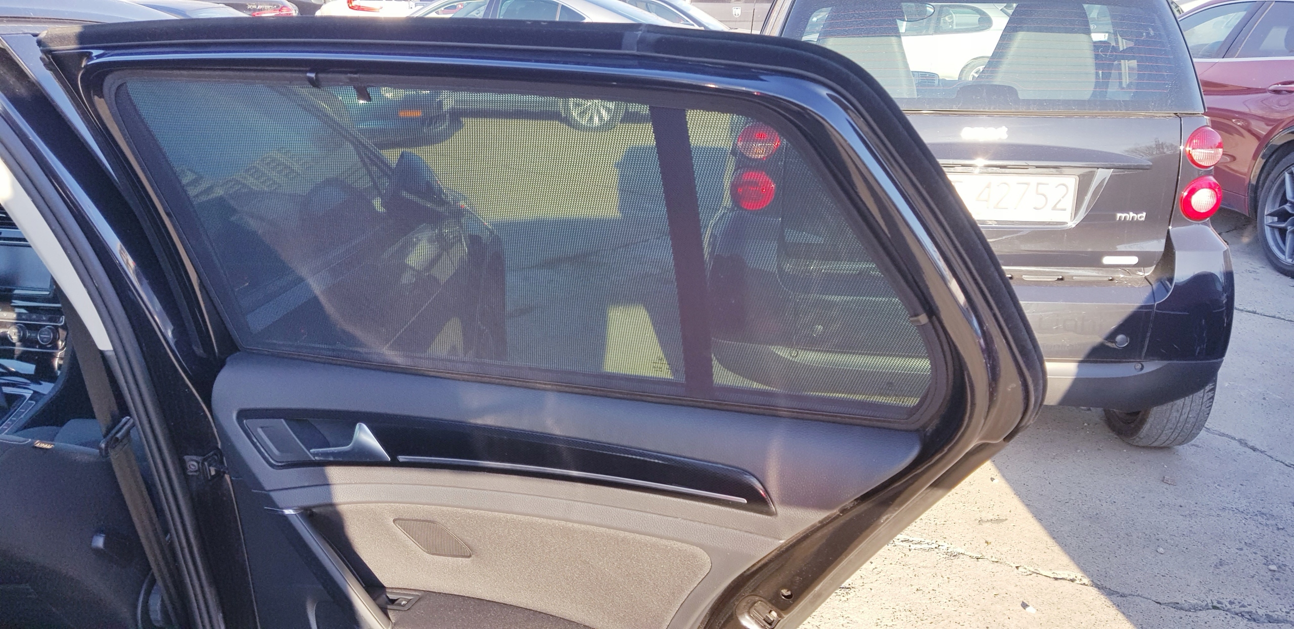 * При открытых окнах они по-прежнему выполняют свою функцию защиты от солнца и УФ-излучения. Кроме того, они защищают от насекомых и обеспечивают вентиляцию, необходимую для находящихся в машине людей или оставленных позади животных >.