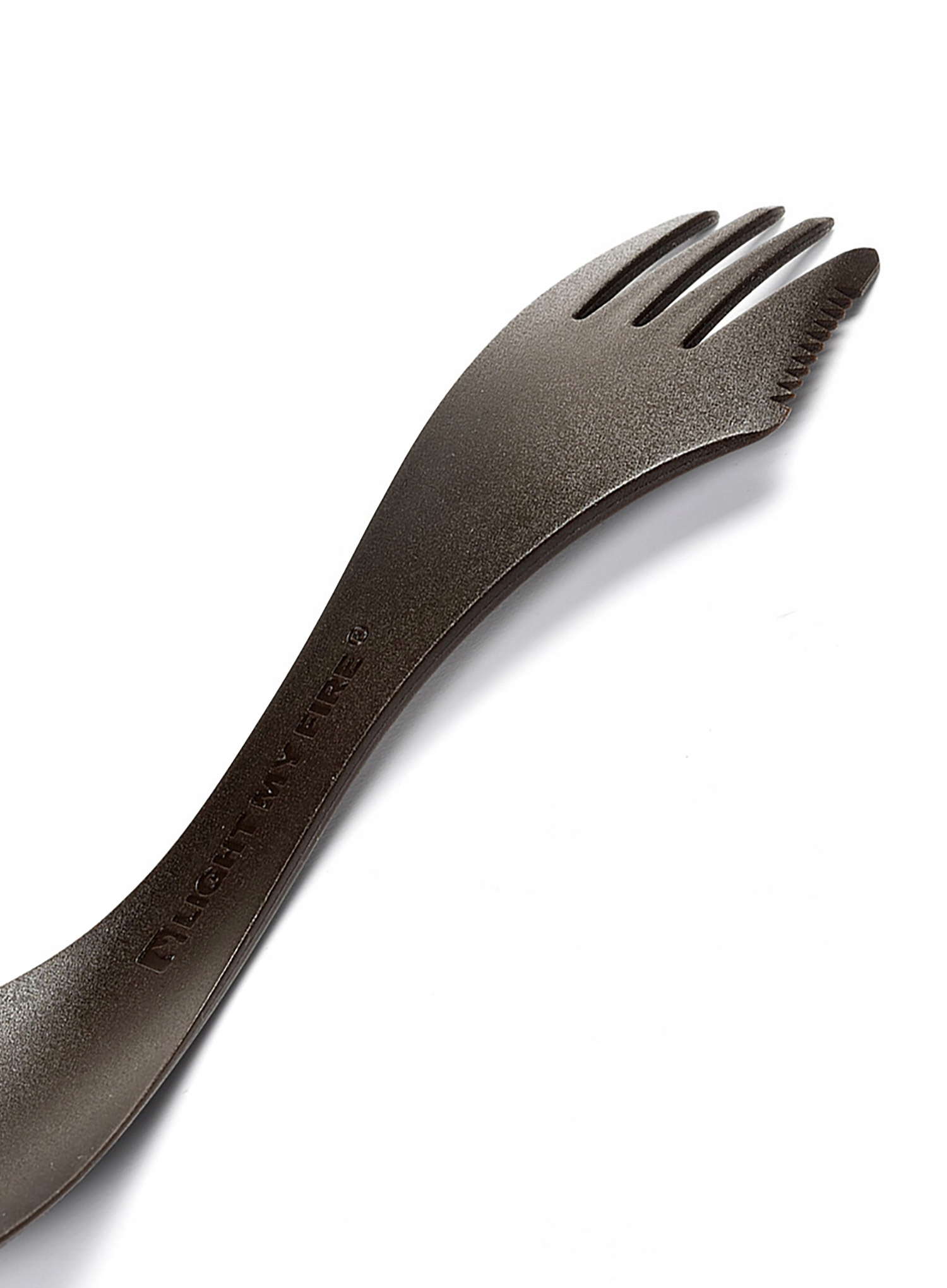 Spork Light My Fire Spork L BIO — какао-насыпка — легкий аксессуар из биопластика, сочетающий в себе функциональность ложки, вилки и ножа. Его можно использовать во время треккинга, кемпинга и пикников.