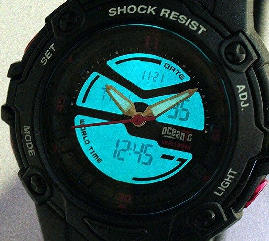 - Люминесцентная подсветка циферблата (ок. 3 сек.)