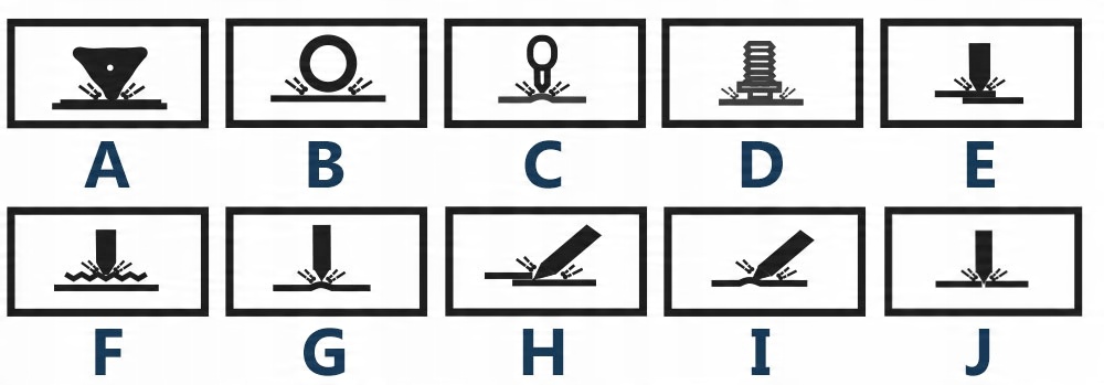 E - Односторонняя сварка | F - Сварка гофрированной проволоки | G - Сглаживание неровностей |