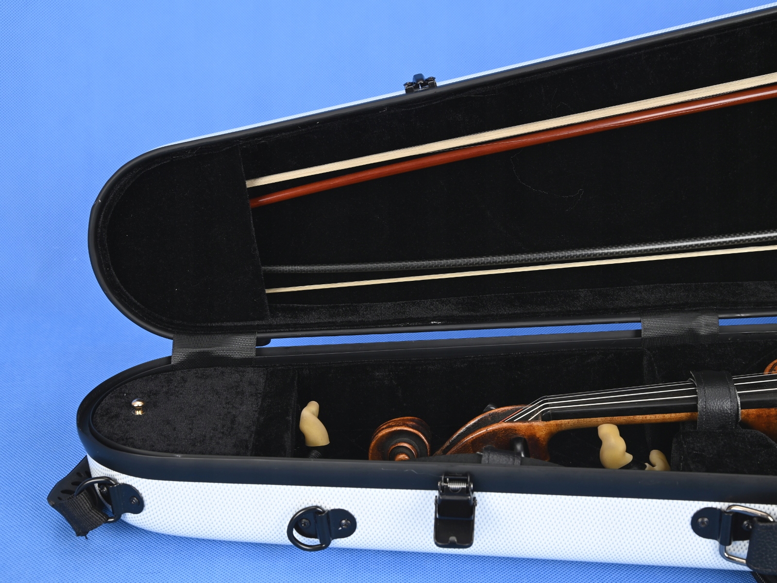Традиционная форма случая скрипки в новой форме. Поликарбонат и Абс. Покрытие обложки раскрывается целью дела. Это один из более дешевых случаев, сделанных из пластика, изготовленного в экономической версии. Набор включает в себя скобки на спине. Вы можете прикрепить сумку к нотам липучкой к корпусу. Различные цвета с текстурой ткани плетения или имитацией волос. Поверхность случая скрипки, покрытой слоем поликарбоната, делает его менее чувствительной к механическим повреждениям, чем ламинаты из стекловолокна. Однако для поддержания красивой блестящей поверхности требуется уход за использованным корпусом.