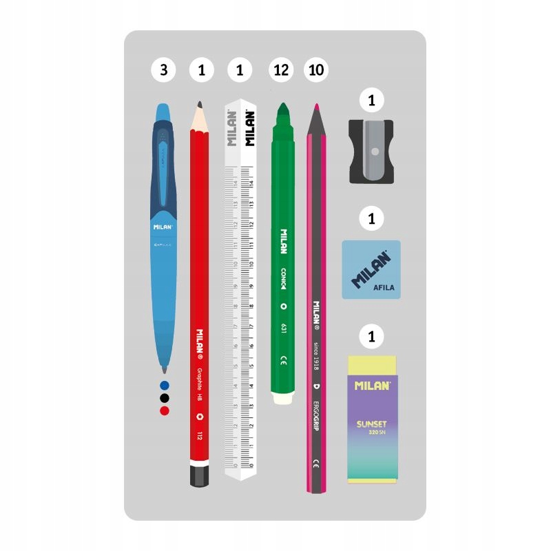 - 4 Sashate : Hb Graphite Pencil, 15 см линовой с треуголярным перекрестком, 3 -й ручка: синий, черный и красный