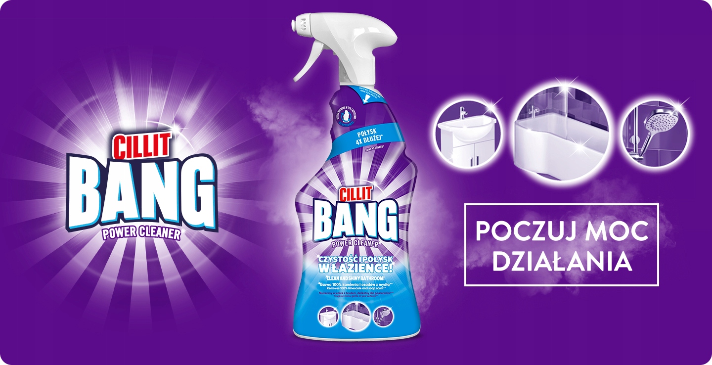 Cillit Bang CLEAN AND GLOSS В ВАННОЙ КОМНАТЕ это идеальное решение для обеспечения вашего ванная комната надолго сохранит чистоту и сохранит глянец в 4 раза дольше!