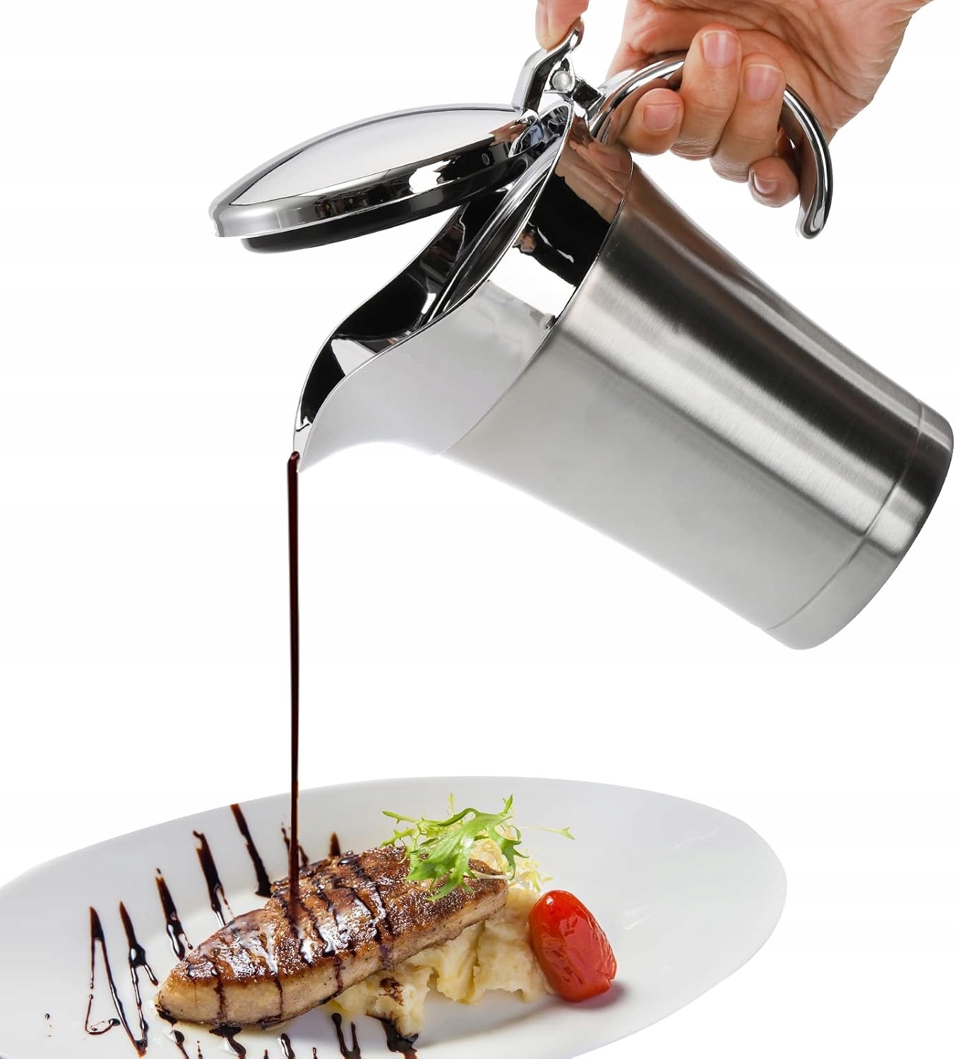 -есть двухслойная конструкция и оснащена крышкой, которая используется для поддержания тепла соуса.