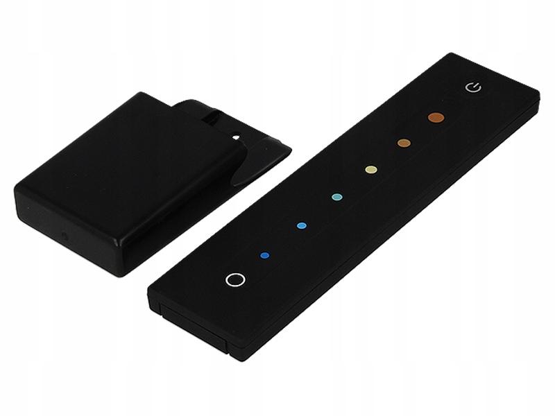 Пульт дистанционного управления с батарейным питанием, используемый для пропорционального смешивания цветов света, излучаемого одноцветными светодиодными лентами с разной цветовой температурой.