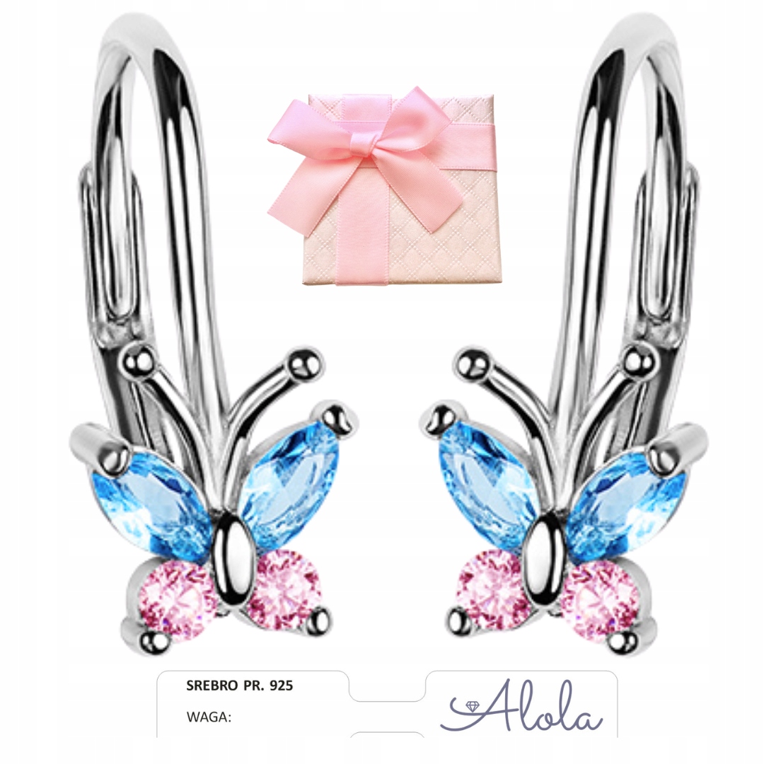 Красивые серьги для бабочки, сделанные из самого высокого качества rhodium - Rhodium silver pr. 925 . Серьги в рамке, алмазные синие и розовые цирконы, которые дают им красивое сияние. > Английский Biggiel b> классический, очень практичный и безопасный. Бабочки