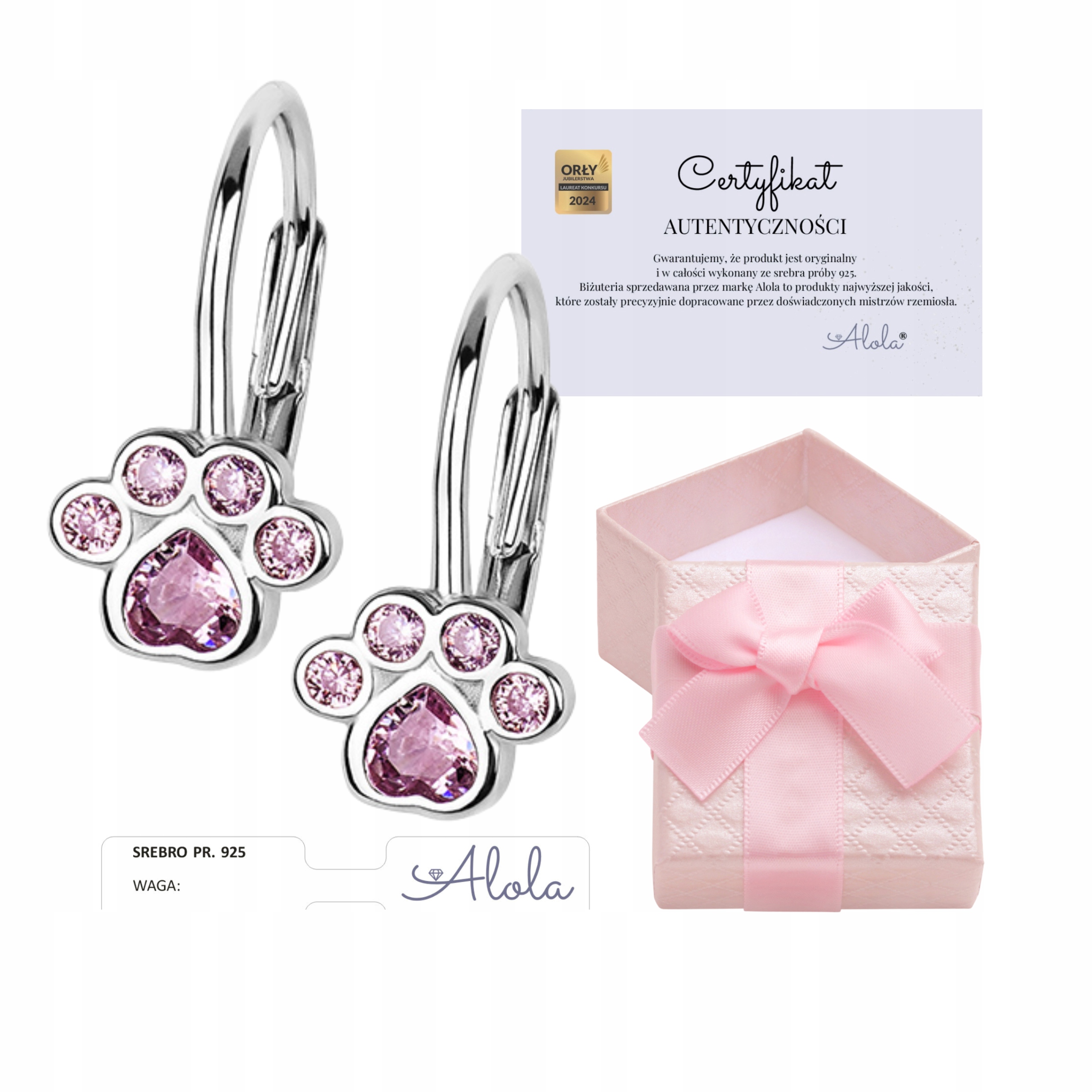 Красивые серьги для девочек, лапы, сделанные из самого высокого качества rhodium silver, pr. 925, в кадре с розовыми цирконами.