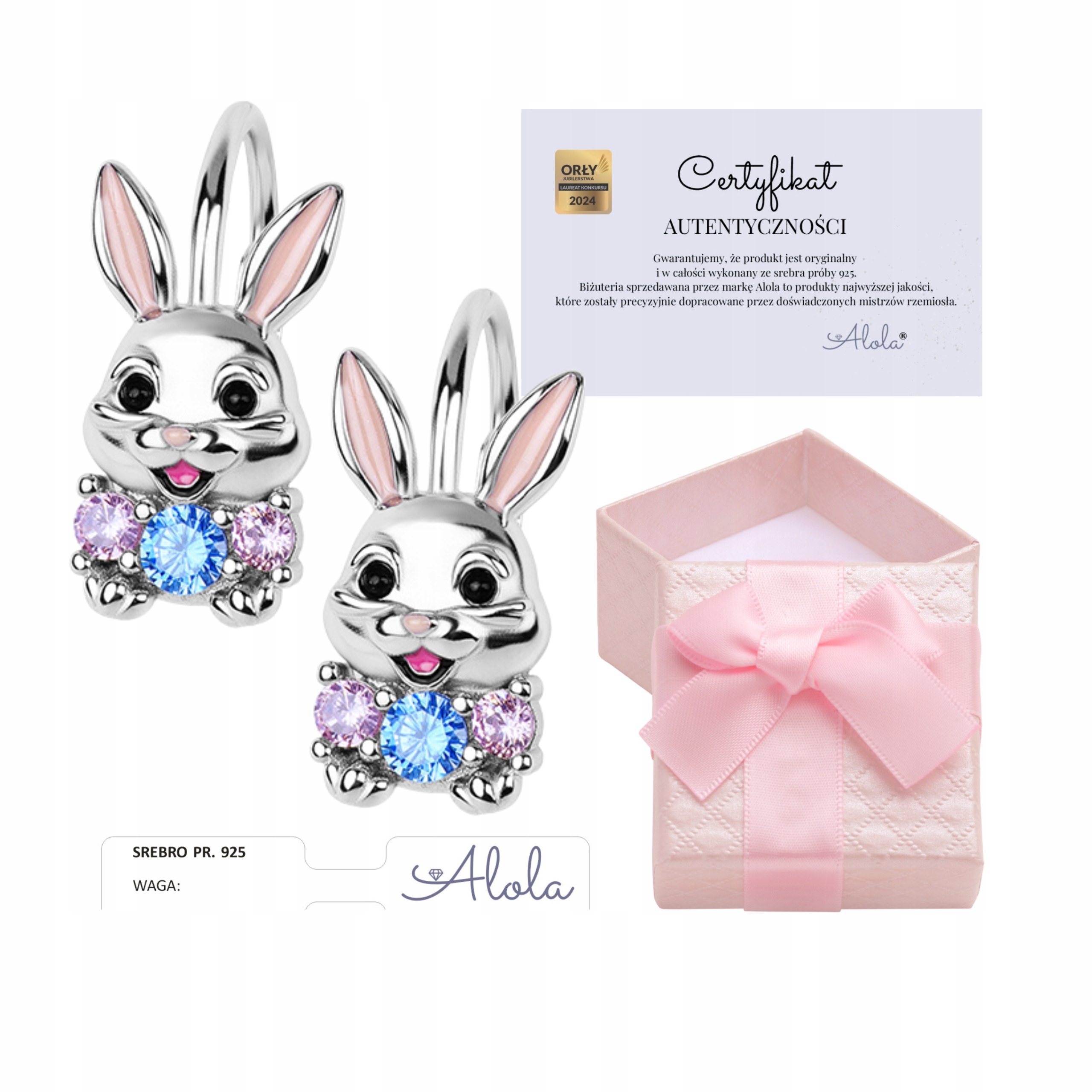 Очаровательные кролики для девочек, сделанные из самого высокого качества rhodium silver, pr. 925 покрыта эмалью и обрамлена розовыми и синими цирконами.