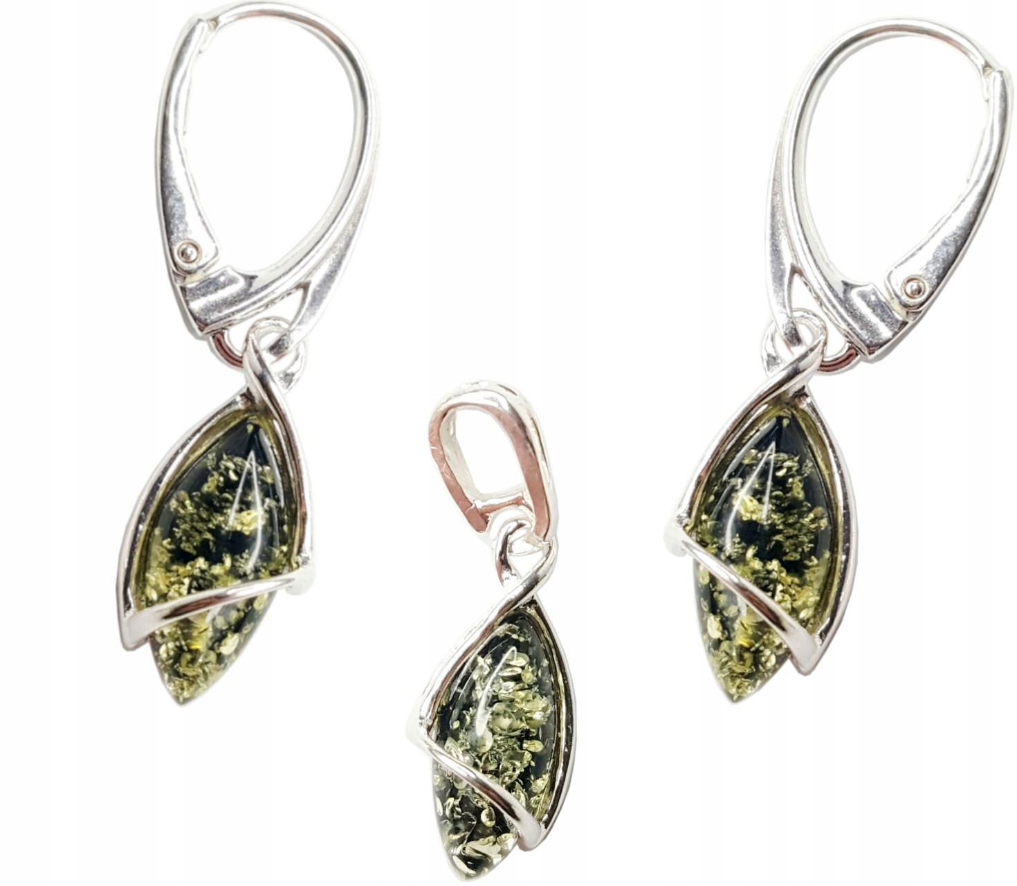 *** СЕРЕБРЯНЫЕ СЕРЬГИ С ЗЕЛЕНЫМ ЯНТАРЕМ ***
