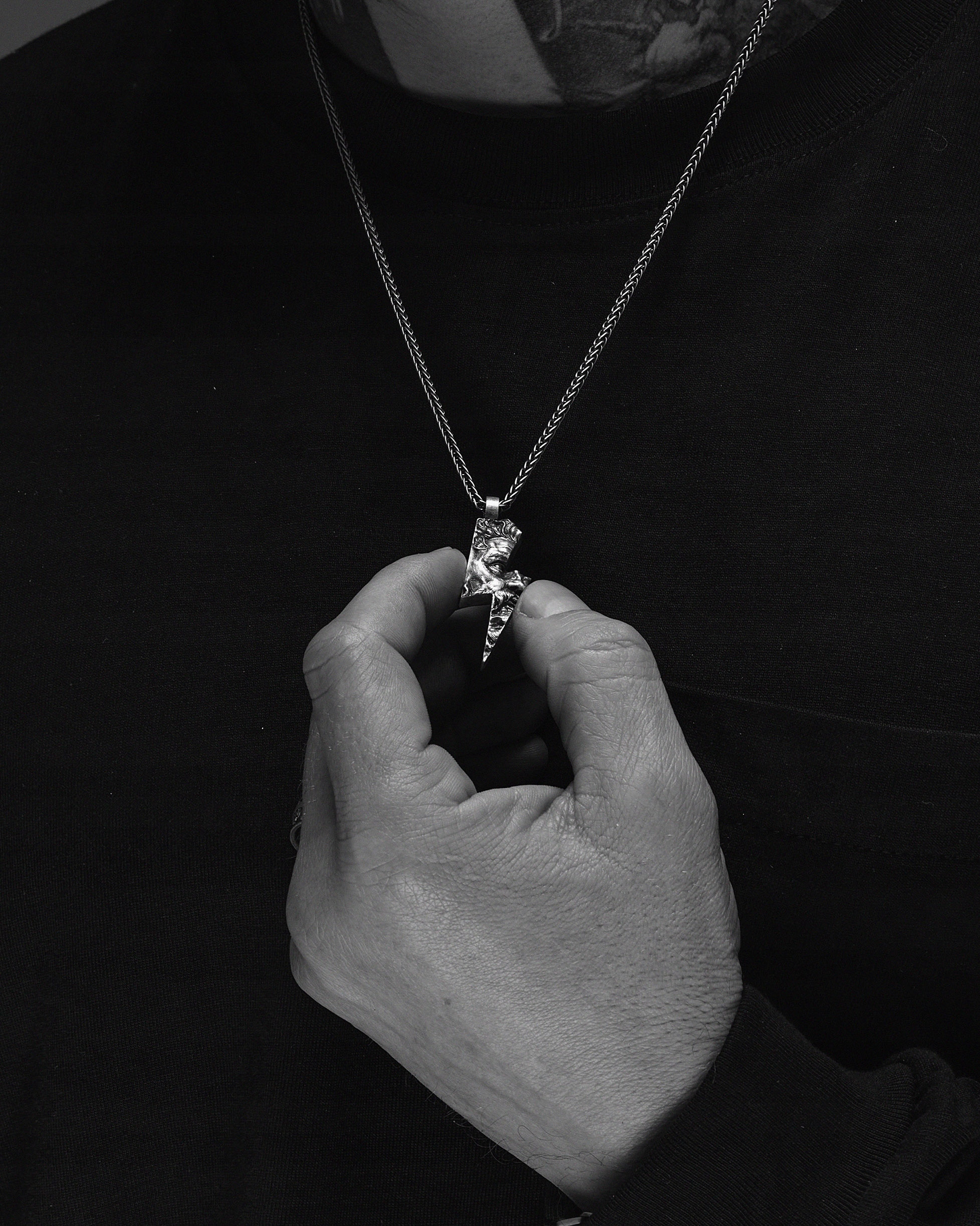Мужской серебряный кулон Зевса. Blyskawica - это мощное и впечатляющее украшение, которое вызывает мысль о силе и силе. Этот кулон вдохновлен фигурой Зевса, Верховного Бога греческой мифологии, который правил молнией. Символ молнии на подвеске рассказывает о силе, энергии и стойке.