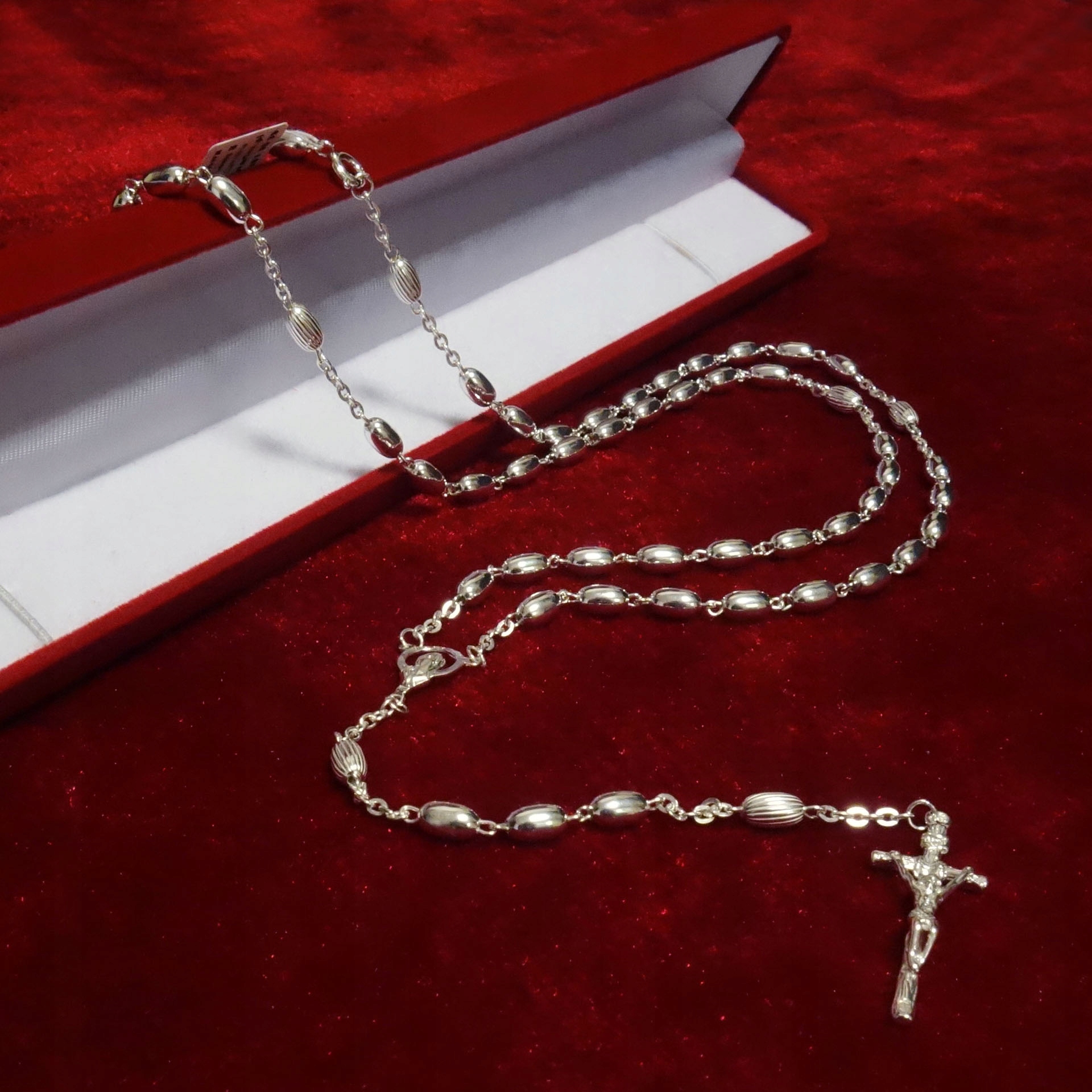 Предлагаем серебряные четки. Четки полностью изготовлены из серебра 925. Бусины крупные, эллипсовидной формы, гладкие, каждая бусина между десятками отличается изящными бороздками. На разъеме изображено Непорочное Сердце Марии и Святое Сердце Иисуса с обратной стороны. У четок есть застежка, позволяющая носить их на шее. Такие четки – прекрасная идея для тонкого подарка ребенку, причащеющемуся к первому Святому Причастию, Таинству Миропомазания, молодоженам по случаю их Венчания и по любому другому поводу.