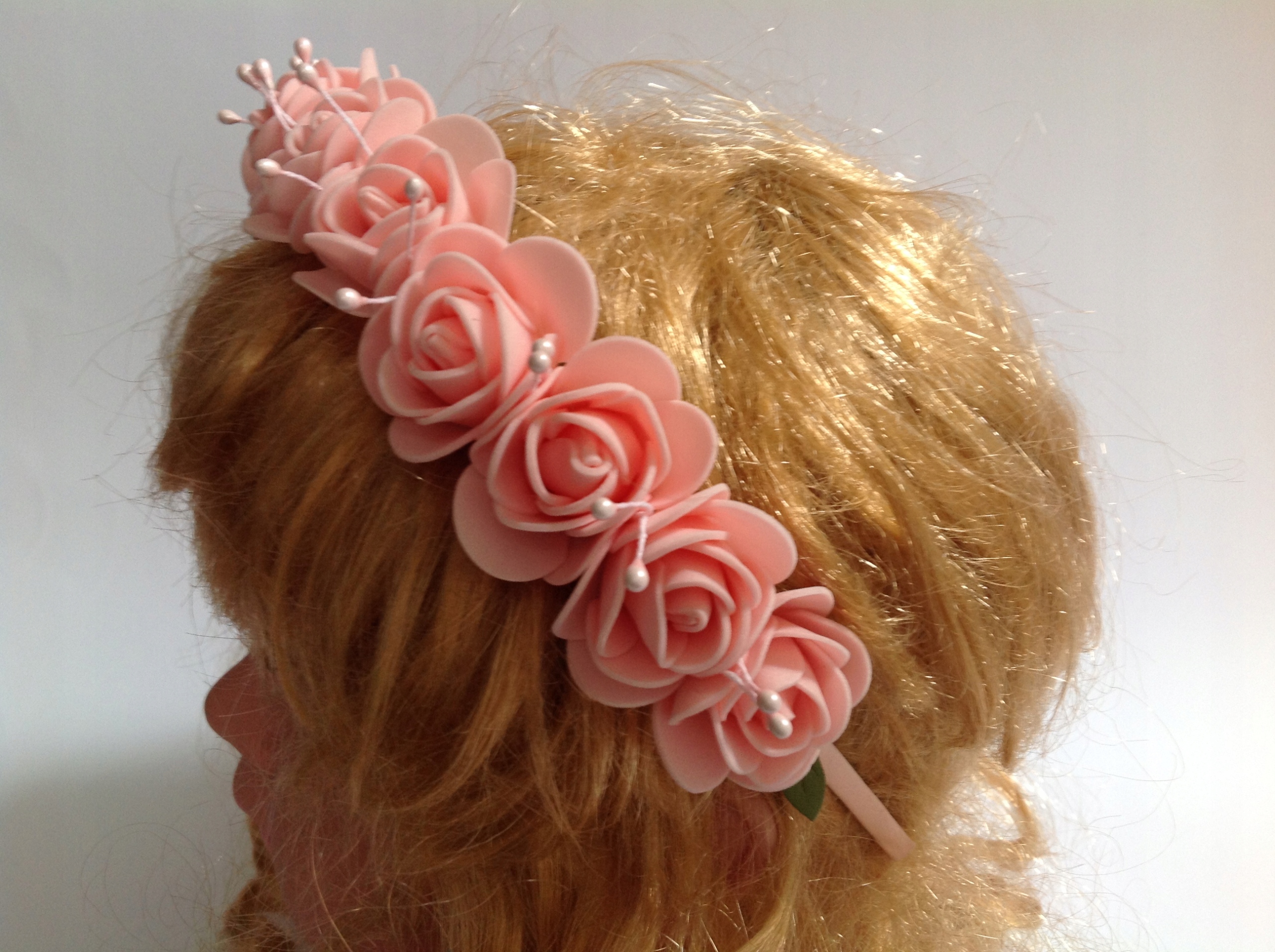 Повязка на голову обтянута тканью лососевого цвета /внутри пластик/