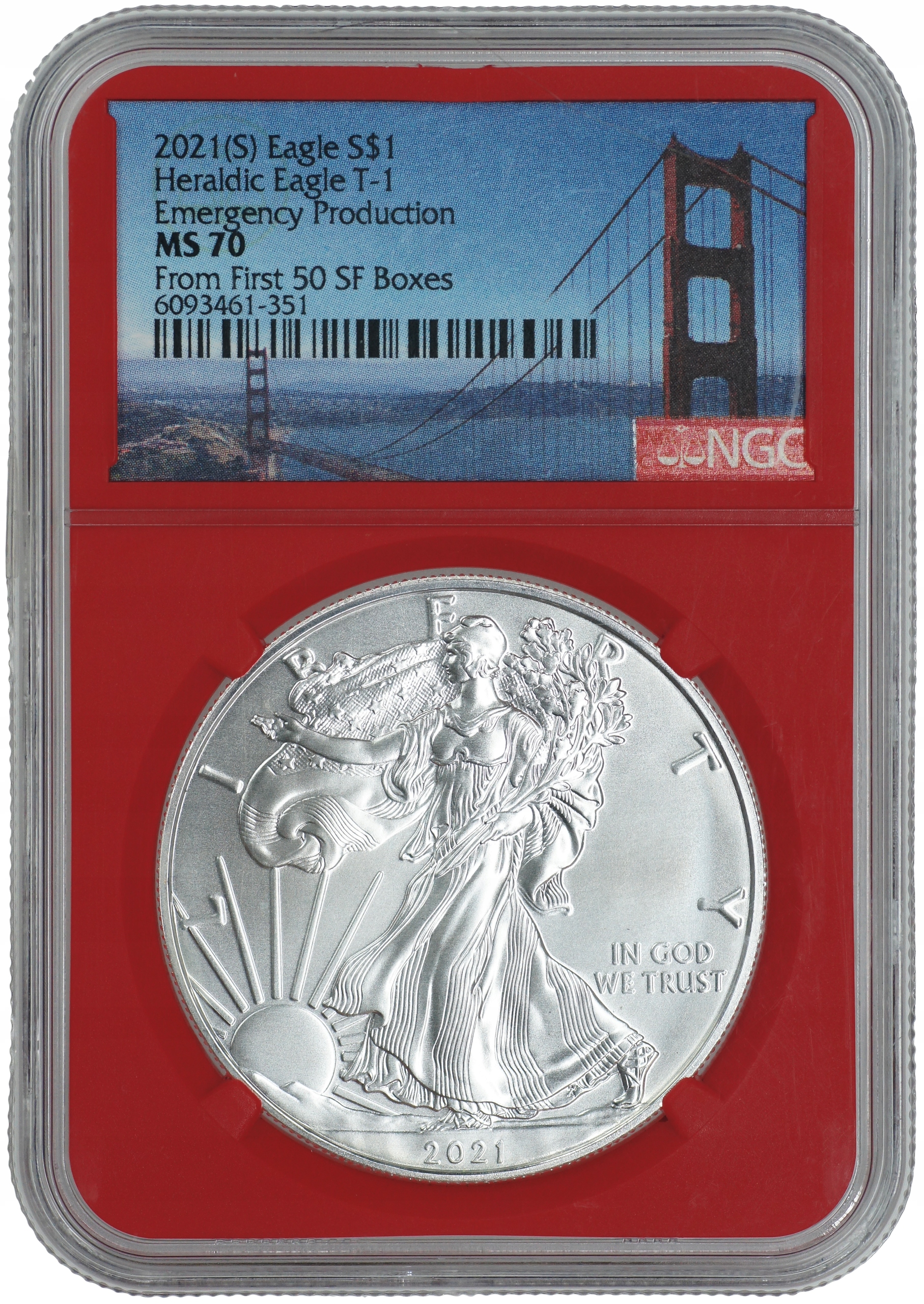 США - $ 1 2021 American Eagle - от первых 50 коробок SF - NGC MS70