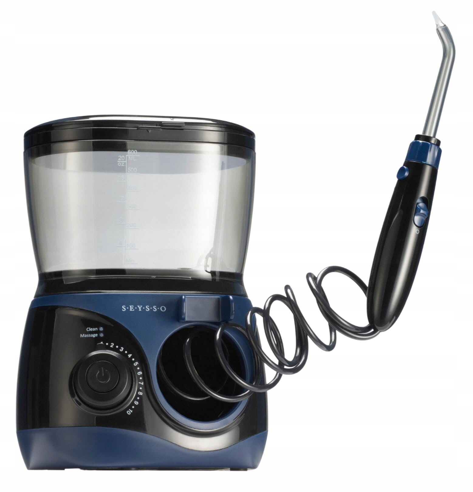 - 1 стационарный ирригатор SEYSSO Planet черного и темно-синего цвета с кабелем питания.
