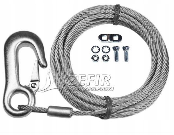 Стальная веревка для оцинкованной лебедки 7,62 м + крюк - 03013