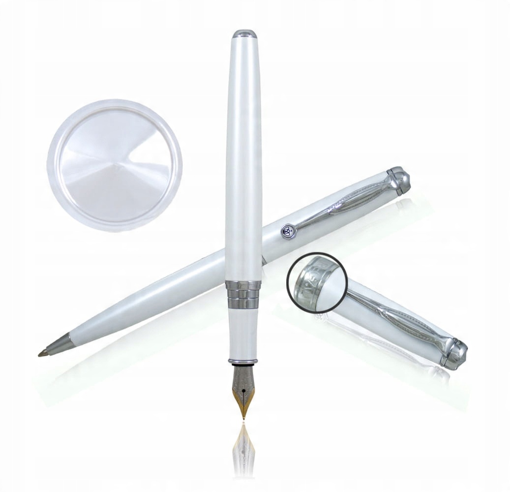 Элегантный набор REGAL "Jennings" белого цвета, содержащий ручку с серебряно-золотым пером (1,8 х 0,8 см), украшенную гравировкой с изображением Эмблема бренда Regal. Шариковая ручка с выкручивающимся стержнем.