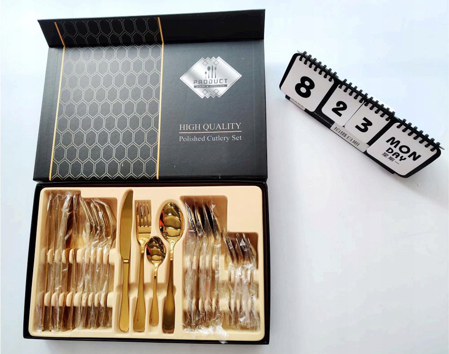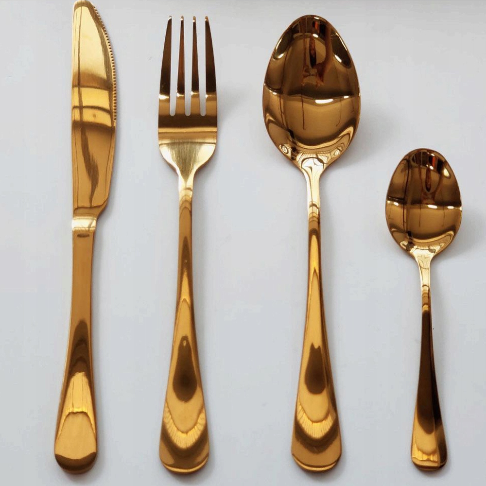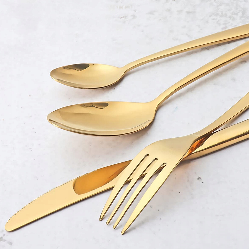 Стальные столовые столовые столовые приборы 24 элемента, золото