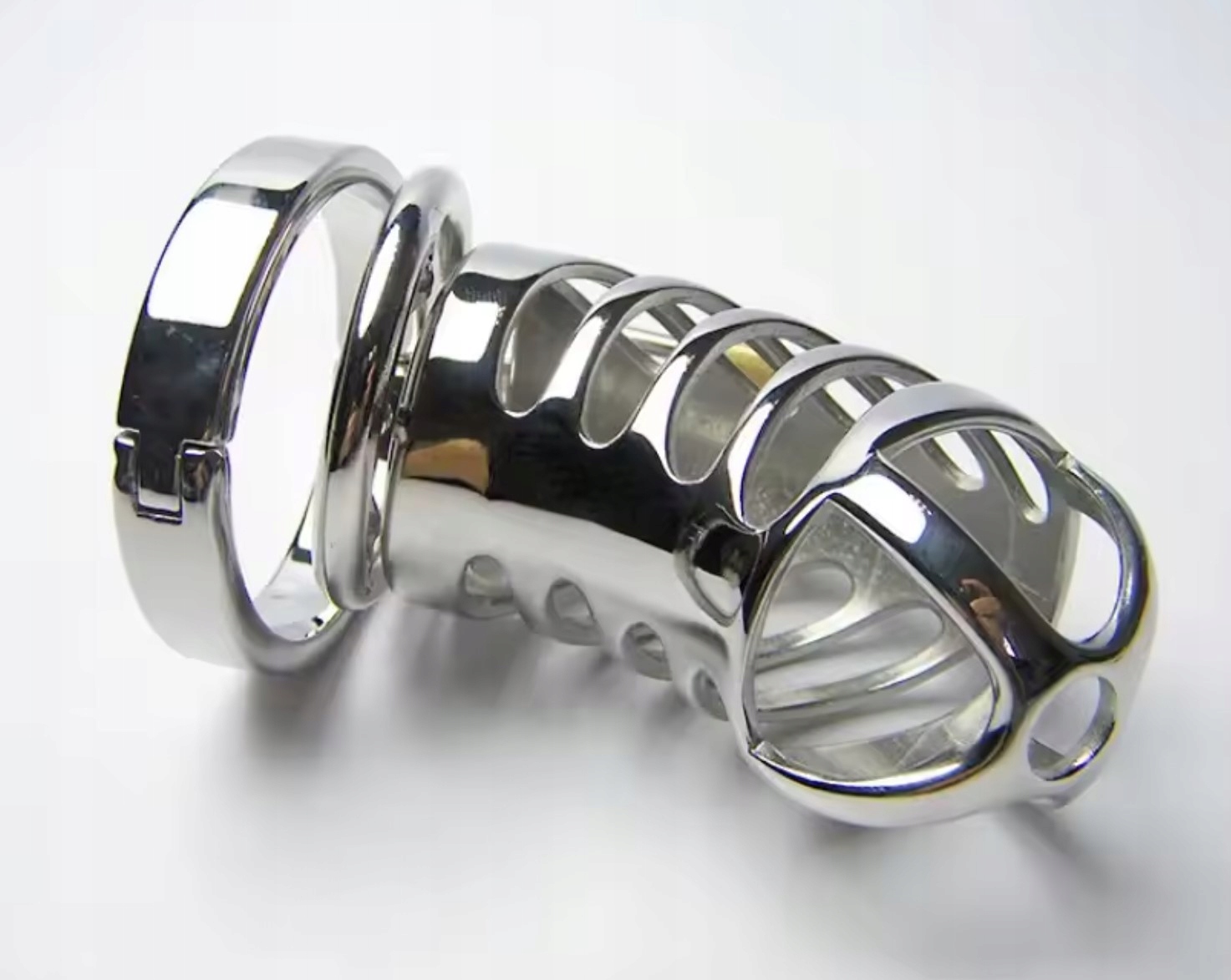 ремень добродетели из нержавеющей стали. В клетке есть специальное отверстие, обеспечивающее мочеиспускание, , что очень важно при выборе типа клетки. Кольцо за клеткой открывается на специальном шарнире. Это переводится на мошонку, затем закрывает и надевает клетку для полового члена. Затем мы подключаем кольцо с клеткой и надеваем на замок.