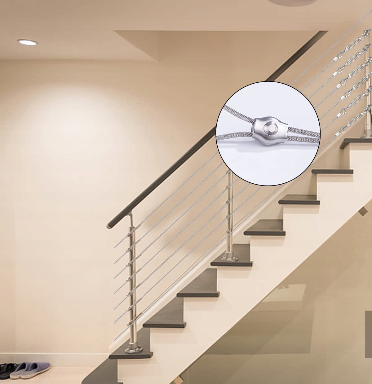 ✔️ ✔ 【STAGE of wire tensioner】: steel cable cord set 3 mm made of 304 stainless steel, stainless steel, Aluminum clamping sleeve made of aluminum, a new cable sleeve with a double hole made of carbon steel, provides good corrosion and rust resistance, hard and durable, allows you to use in all weather conditions, very easy to install and disassemble. Сталь из нержавеющей стали толщиной 3 мм требует прочной резак; Алюминиевая петля зажима M3 требует гидравлического инструмента для зажима, зажимы разъемов и затягивания провода; Кабельные зажимы M3 для стальных канатов увеличивают удобство пользователя, у которого нет инструмента гидравлического зажима и может заменить петлю алюминиевого зажима, просто затяните винты небольшим ключом.