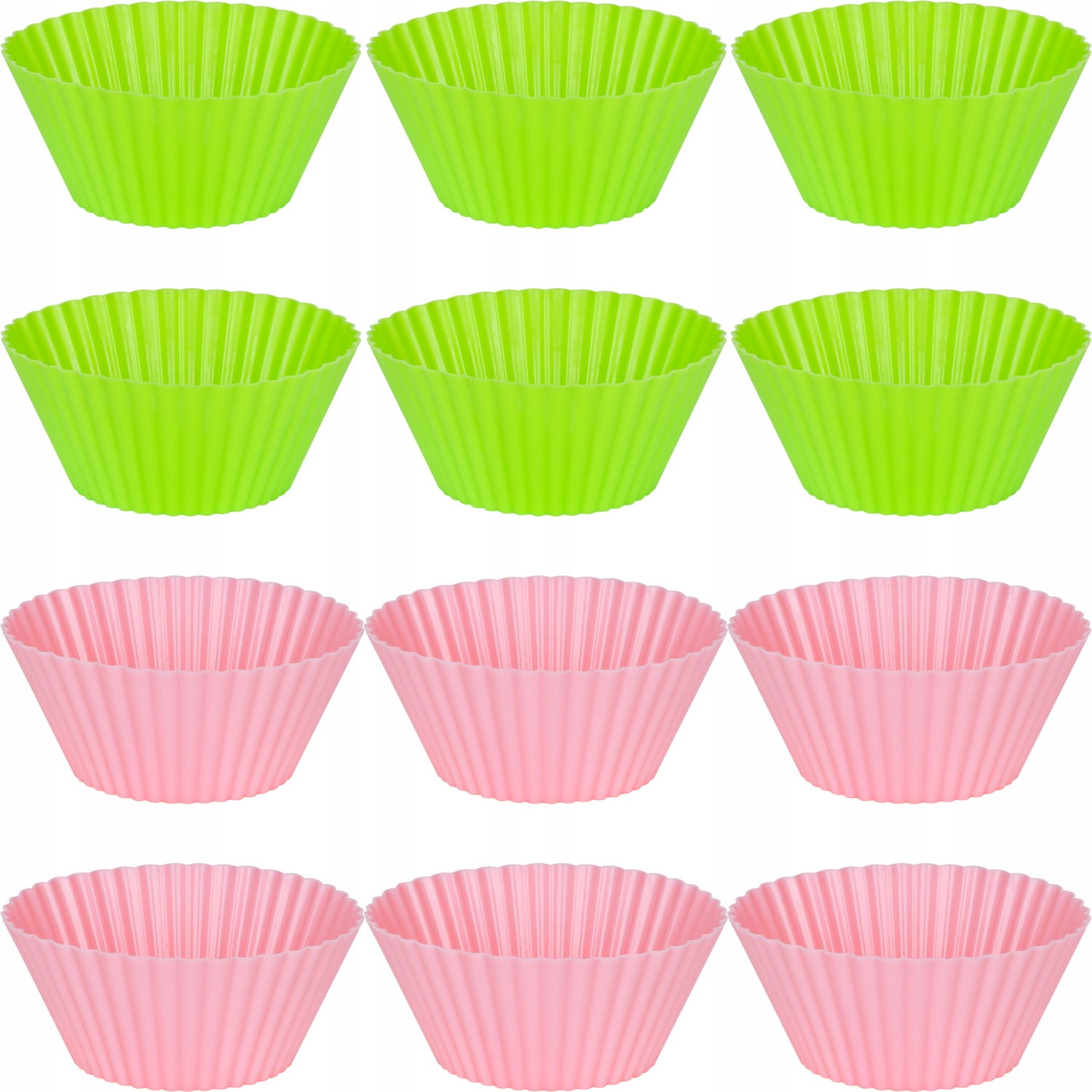 Набор форм для кексов + 12 силиконовых зеленых и розовых форм