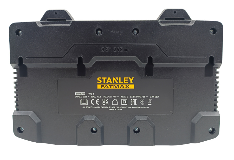 Двойное зарядное устройство STANLEY FATMAX, модель SFMCB24-QW, предназначенное для зарядки аккумуляторов Stanley Series V20.